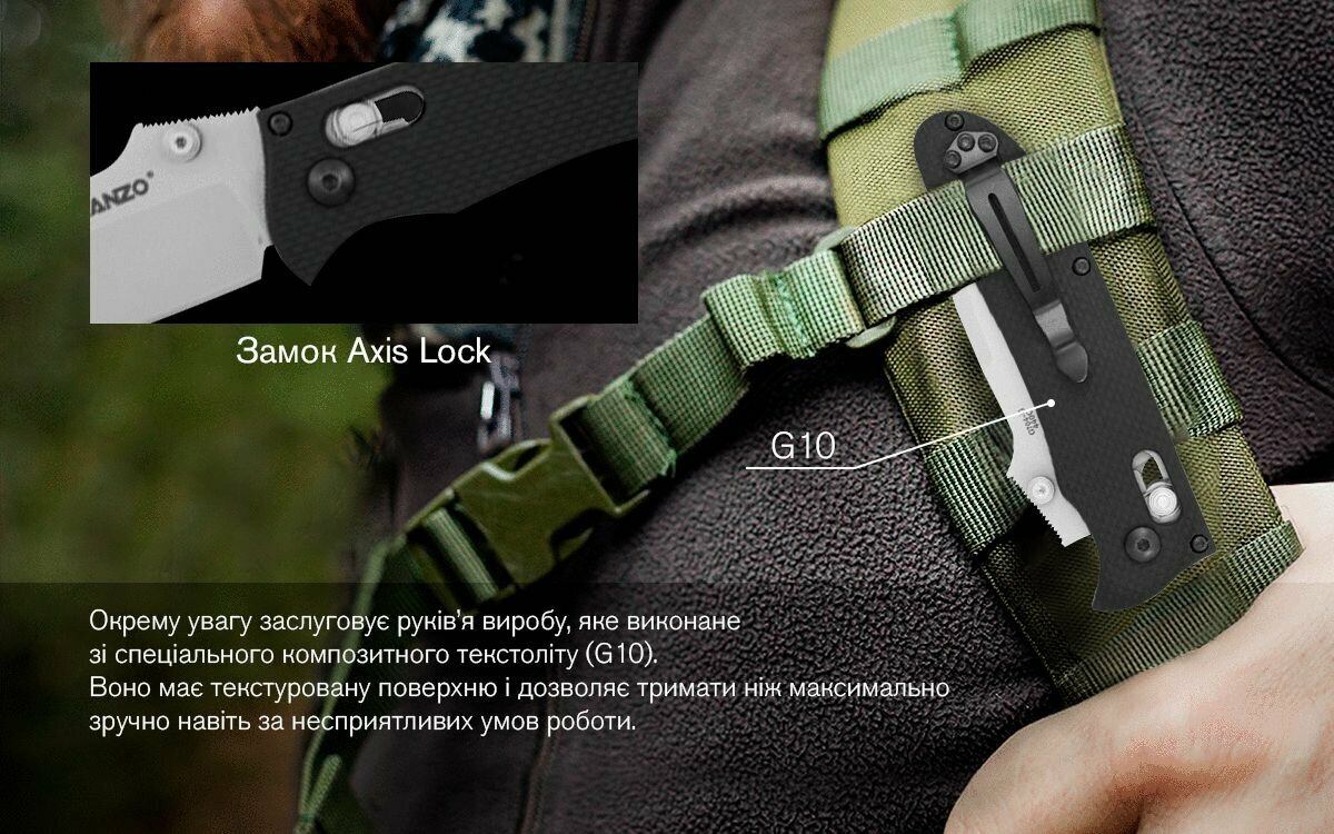 - замок Axis Lock, що виключає можливість випадкового закриття ножа;