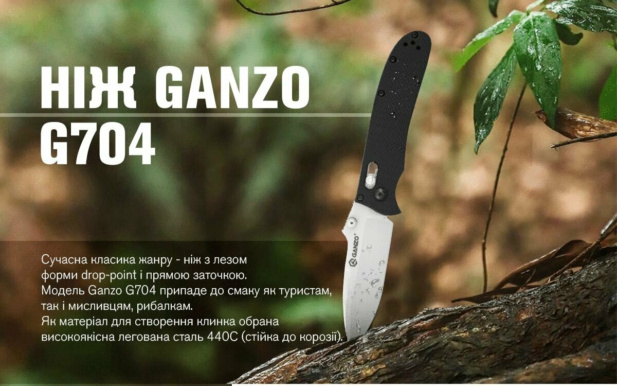 Сучасна класика жанру-ніж з клинком drop-point і прямий заточуванням. Модель Ganzo G704 припаде до смаку як туристам, так і мисливцям, рибалкам.