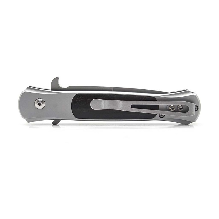 Рукоятка зроблена з нержавіючої сталі і має дерев'яні вставки. На рукоятці розташовується спеціальна, притискна кліпса, за яку можна кріпити ніж до ременя або інший екіпіровці.