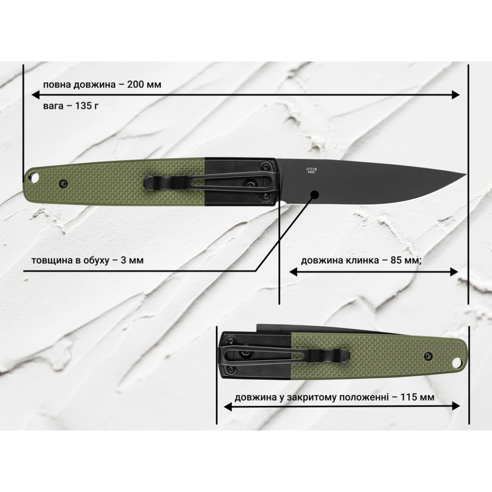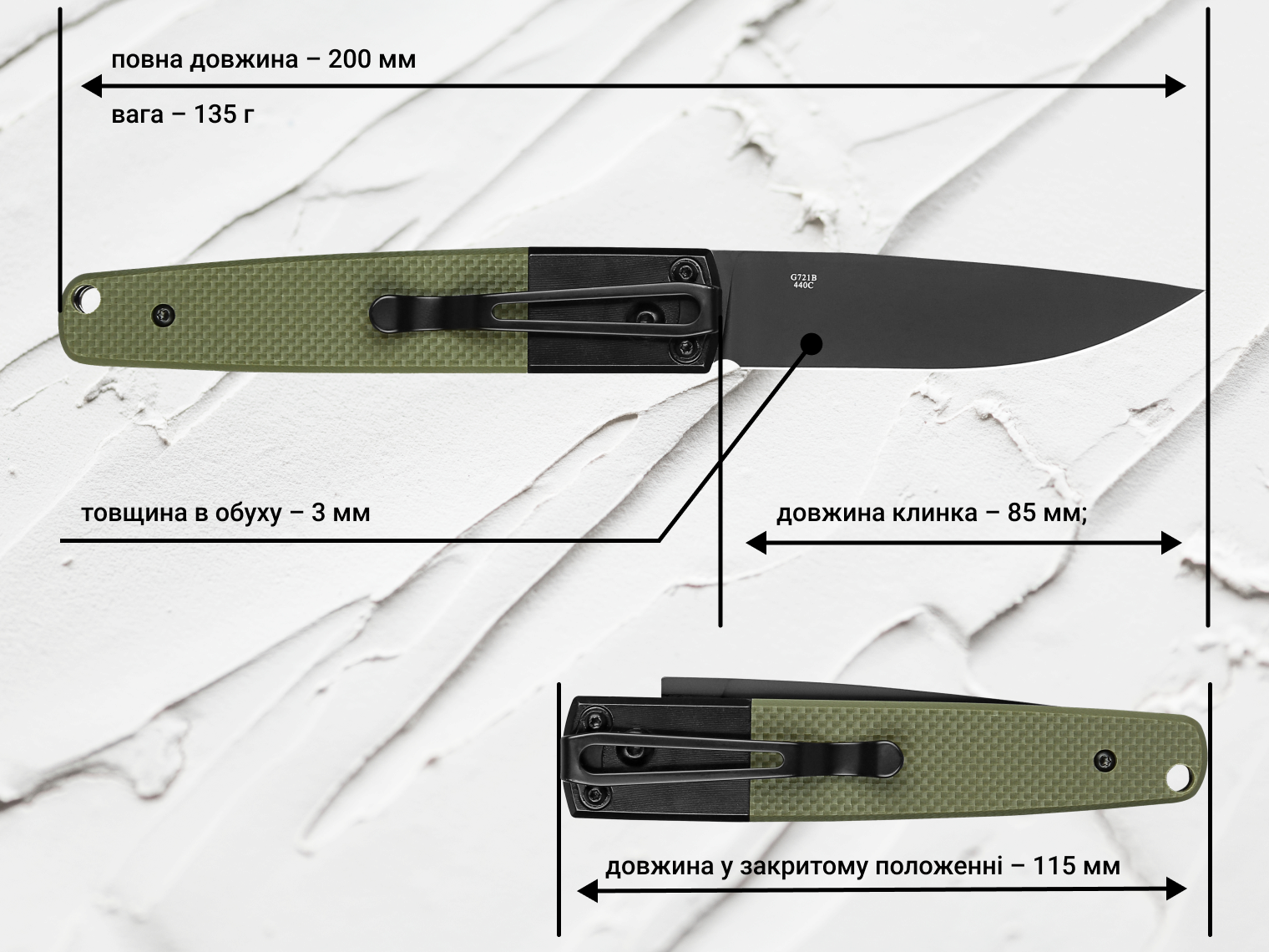- матеріал руківʼя – нержавіюча сталь + склопластик G10;