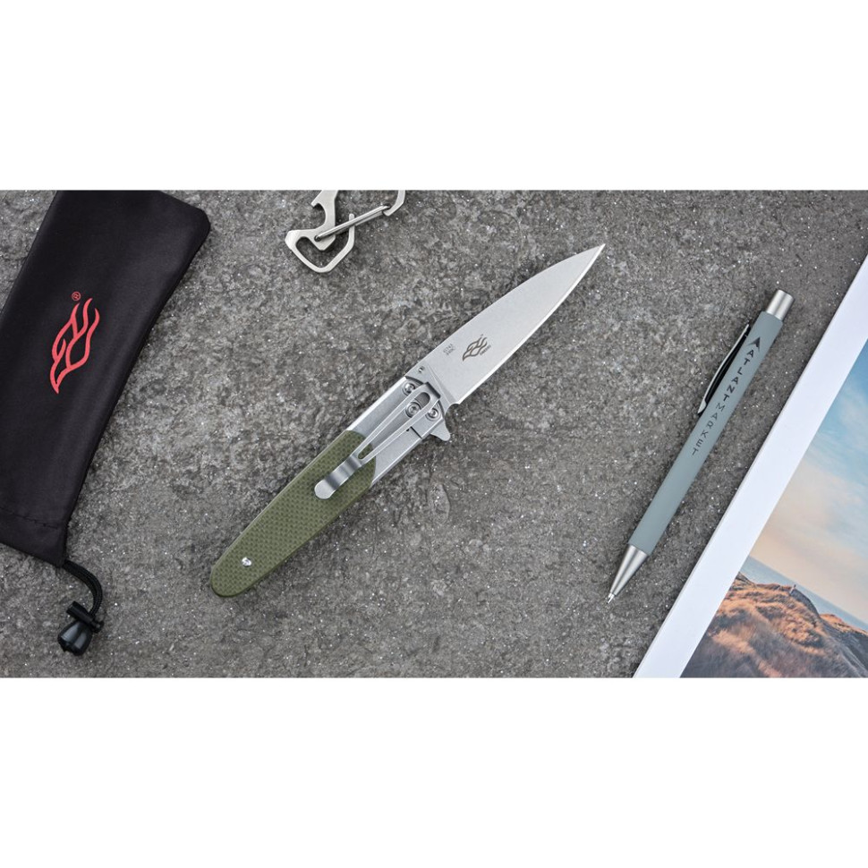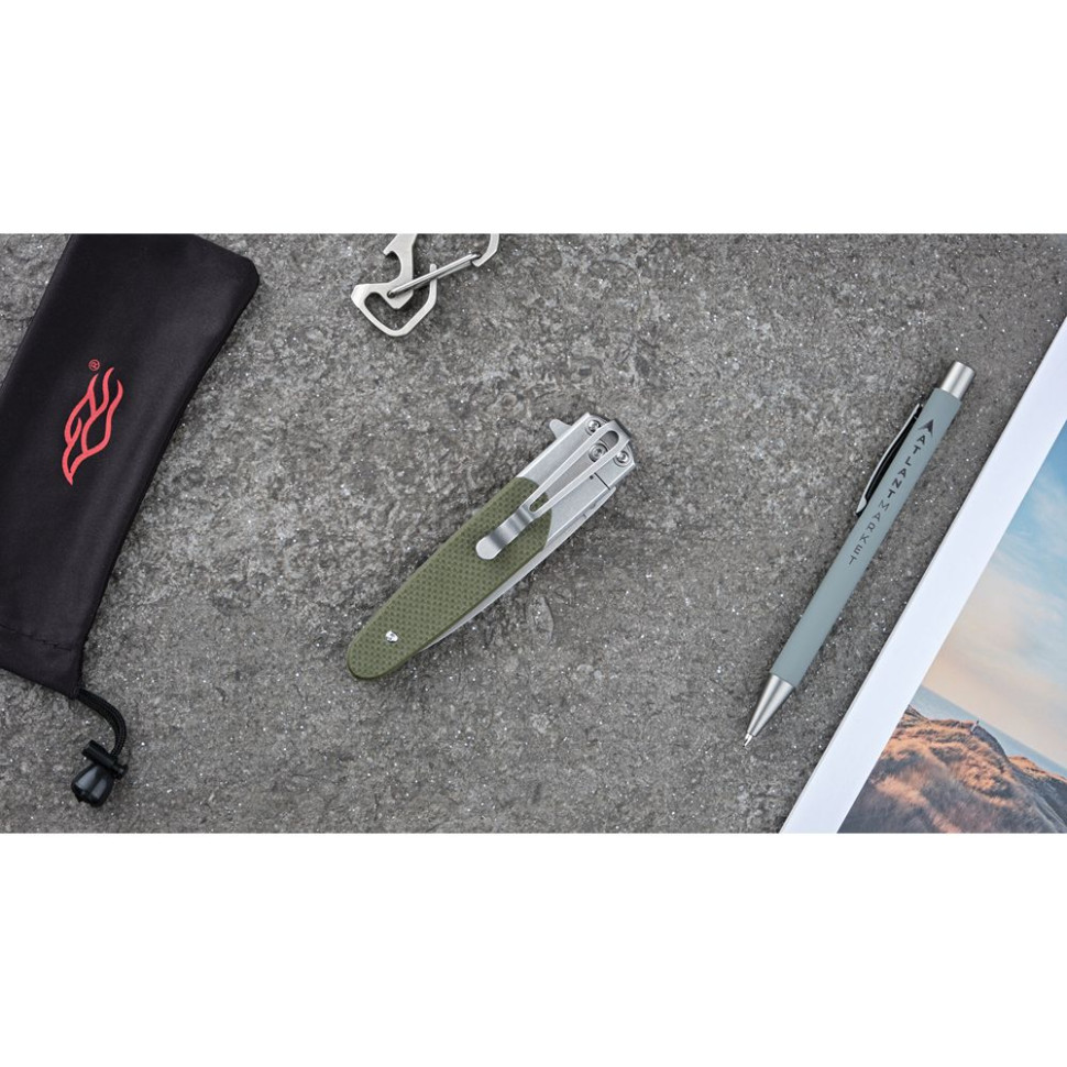 Механізм Frame Lock вбудований в рукоятку ножа, щоб служити замком для клінка. Він спрацьовує при відкриванні ножа і не дає йому скластися, поки користувач не усуне перешкоду для леза. Це робить будь-які види робіт з ножем більш безпечними. Важить Ganzo G743-2 всього 130 грам, що також є його перевагою для туристичного використання.