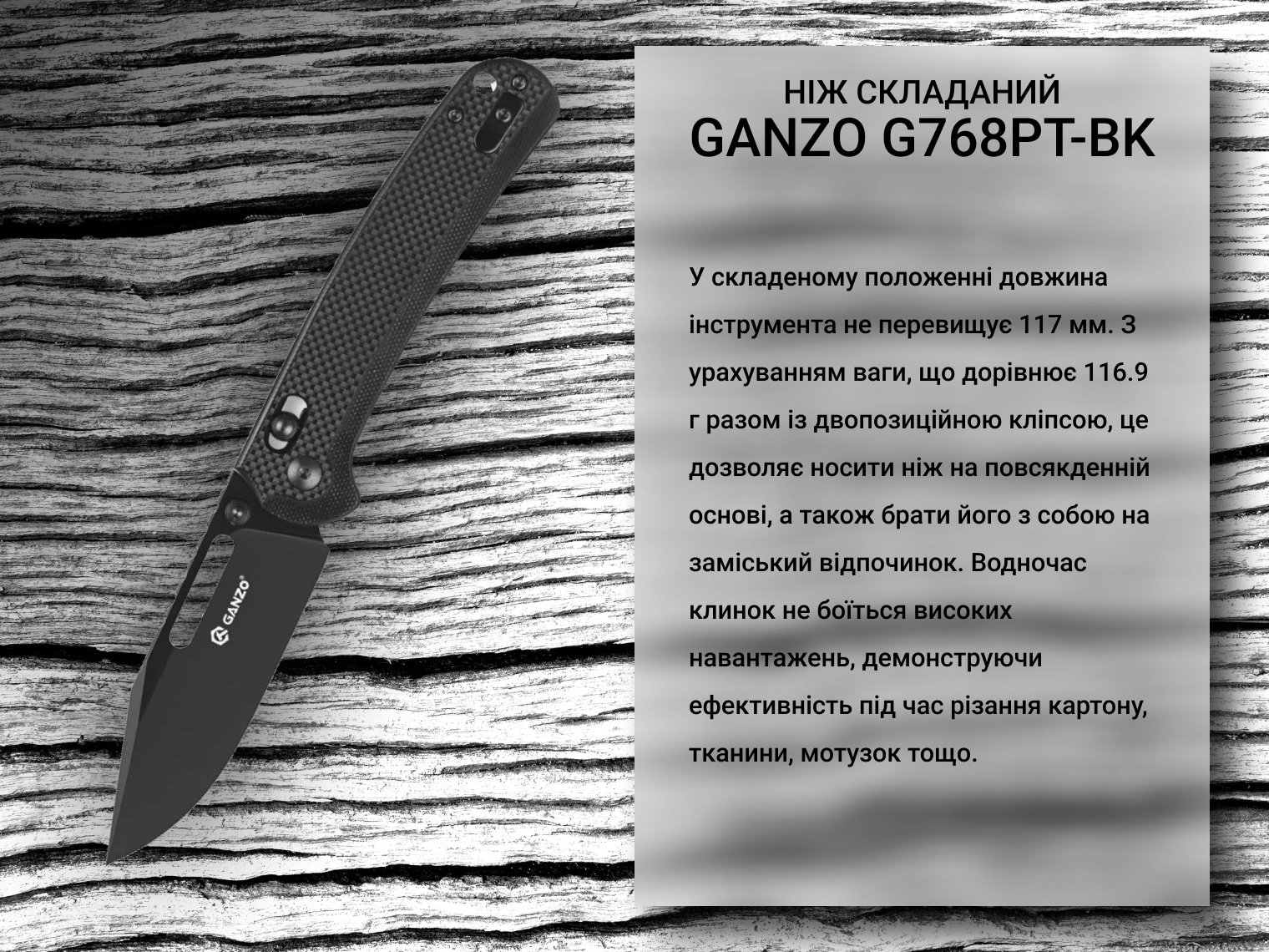 Опис ножа складаного Ganzo G768PT-BK чорного: