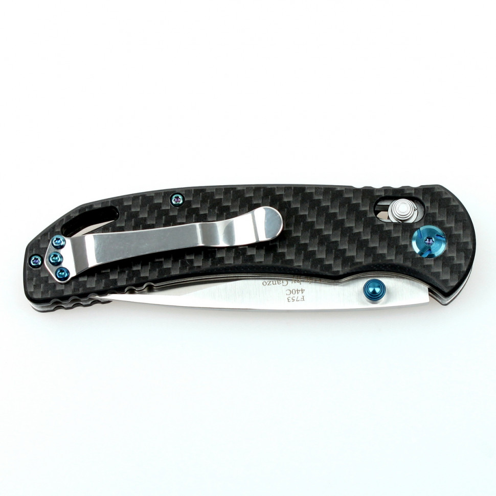 Ніж Firebird F7531-CF являє собою складну модель для туризму, відпочинку на природі або використання в рамках міста. Це зручний і довговічний ніж, який неодмінно стане вашим вірним супутником в будь-яких поїздках. Лезо цього клинка отримало форму clip-point з вираженим вістрям і скосом на верхній частині клинка, що імітує заточку. Дійсно ж заточений цей ніж тільки по нижній кромці, яка зроблена повністю рівною. Така система заточування істотно полегшує догляд за ножем, який зводиться до періодичного підточування навіть найпростішої кишенькової точилкою. Поверхня металу (а це, до речі, нержавіюча сталь 440С) відшліфована способом satin wash. Це допомагає приховати дрібні недоліки у вигляді подряпин або потертостей, які з'являться на лезі ножа з часом. Довжина клинка Firebird F7531-CF дорівнює 89 мм.