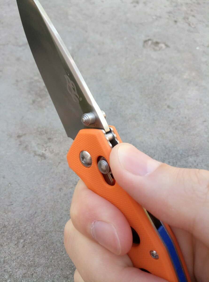 Как было сказано ранее, клинок фиксируется замком Axis-lock. В исполнении модели Firebird FB7621 он легко управляем даже одной рукой, однако, случайно открыть нож практически невозможно. По прочности его вполне можно сравнить с Liner-lock или подобным механизмом. Но, как и любой другой штифтовой механизм, применяемый замок восприимчив к загрязнениям. С другой стороны, данная модель позиционируется производителем как универсальный EDC-нож (для повседневного ношения), что подразумевает использование ножа в городских условиях и своевременный уход за ним.