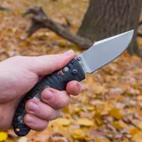 Накладки из G10 очень ухватистые, чему способствует вырезанный на них рисунок. Как мне показалось, нож ляжет не в каждую руку из-за формы своей рукояти. Мне больше нравятся прямые ручки ножей. Клипса изогнутая, имеет только одно положение. Она достаточной жесткости и длины чтобы фиксировать нож в кармане.