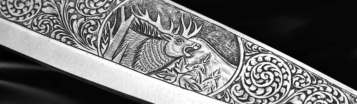 Гравировка ножей и других предметов используется не только в декоративных целях, но и для функциональных задач: нанесение серийных номеров, логотипов, технической информации, персонализации изделий. Она актуальна и в искусстве, и в промышленности — от создания уникальных декоративных элементов до массового производства компонентов.
