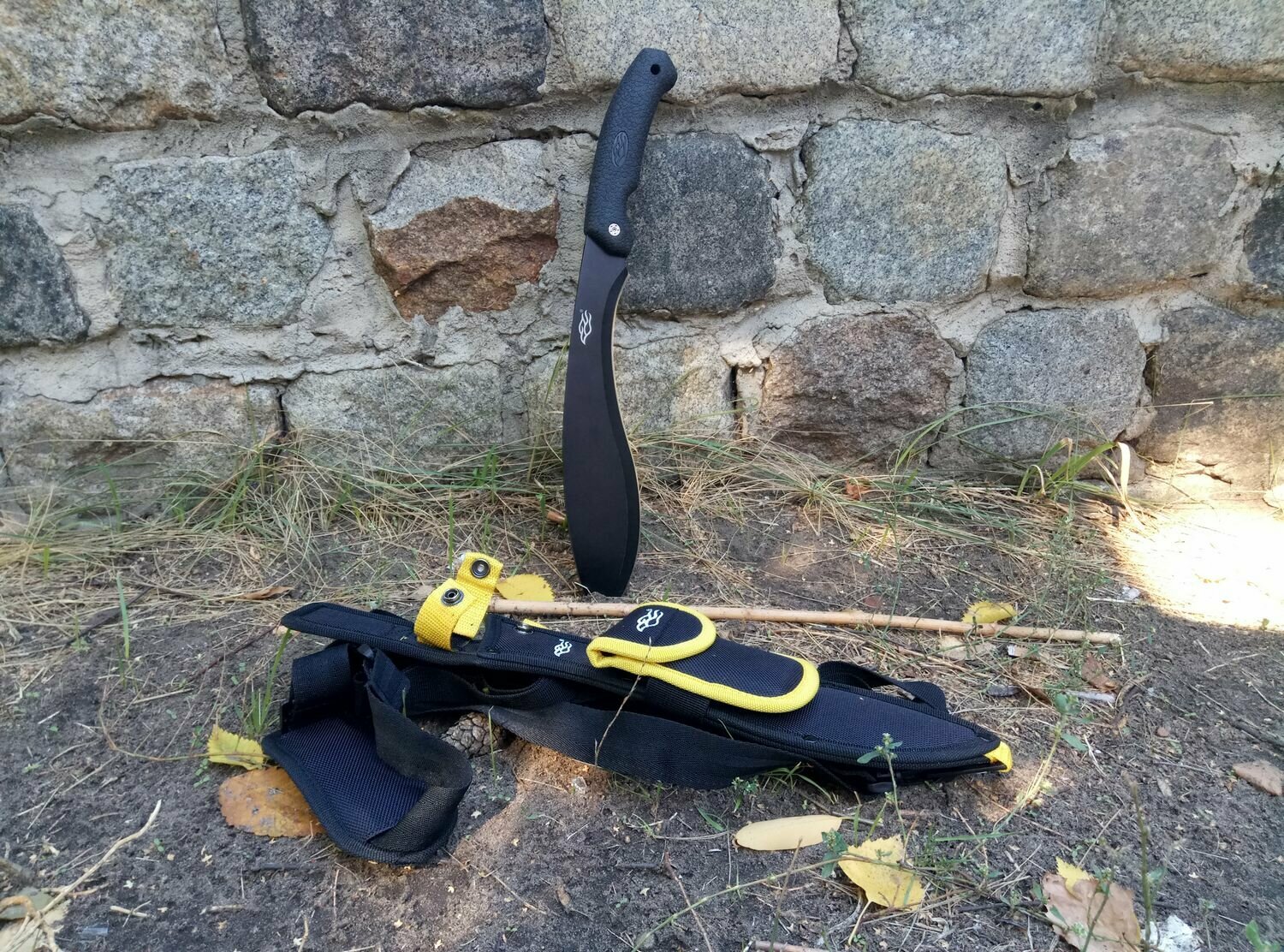 А вот чехлы из нейлона (как большой, так и маленький) имеют яркие вставки желтого цвета, которые неплохо выделяются на фоне невысокой травы или просто на земле, позволяя с лёгкостью обнаружить мачете с расстояния нескольких метров.