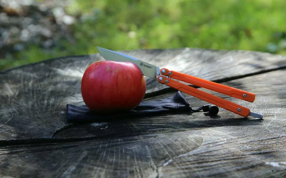 Специфика ножа-бабочки Ganzo заключается в весе конструкции и его распределении между клинком и рукоятью. Из 50 грамм большая часть веса приходится на клинок, что позволяет мгновенно раскрыть нож, когда нужно быстро ним воспользоваться.
