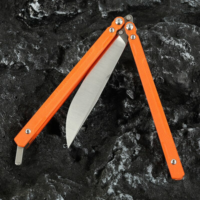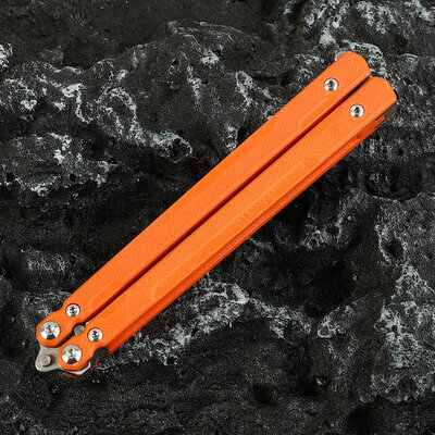 В отличие от классических балисонгов, которые имеют полностью металлическую конструкцию, Ganzo решили оснастить свое детище более практичными рукоятями с накладками G10. Данное решение повышает комфорт во время удержания инструмента, а также дает возможность использовать его вне зависимости от температуры воздуха, поскольку стеклотекстолит не нагревается, не трескается и не меняет форму под воздействием негативных сред.