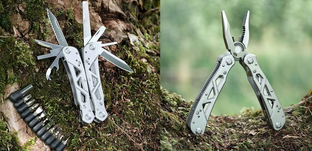 Этот металлический инструмент наделен большим перечнем функций. Он легко справится с самыми разными задачами по ремонту, а также поможет решить некоторые другие вопросы относительно походного быта. Эта модель инструмента выполняет функции напильника, отвертки, ножа, кусачек, шила, открывашки и других. Выполнен инструмент из высококачественной прочной стали, которая обеспечивает длительный срок службы изделия. Несмотря на огромный перечень преимуществ инструмент отличается демократичной ценовой политикой. Поставляется мультитул в чехле, что очень удобно. Так его можно кинуть в рюкзак и не переживать, что он повредит другие вещи, которые уже лежат в нем.
