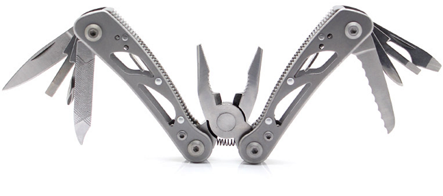 Ножи здесь поменьше, но есть серрейторный и обычный. Небольшие кусачки встроены в основание плоскогубцев, открываются также легко за счет пружины. Приспособление для снятия электроизоляции из проводов, шило и приспособление для вскрытия банок тоже имеются. Плюсом идет пилочка для ногтей. Мультитул очень компактный, может использоваться как брелок, доступный по стоимости, легкий. Хороший вариант для EDC-использования – ему каждый день найдется применение.