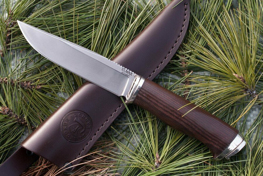 Третья группа объединяет марки стали наилучшего качества. Среди самых известных марок этого уровня можно назвать Elmax и CPM S30VN. Elmax производится в Австрии. Она очень прочная, отлично держит заточку и относительно легко точится, ее твердость составляет 58-62HRC. Этот сплав содержит 1,7% углерода, 18% хрома, 1% молибдена, 0,8% хрома, 3% ванадия. Это порошковая сталь, которую многие знатоки считают лучшей для ножевой индустрии.
