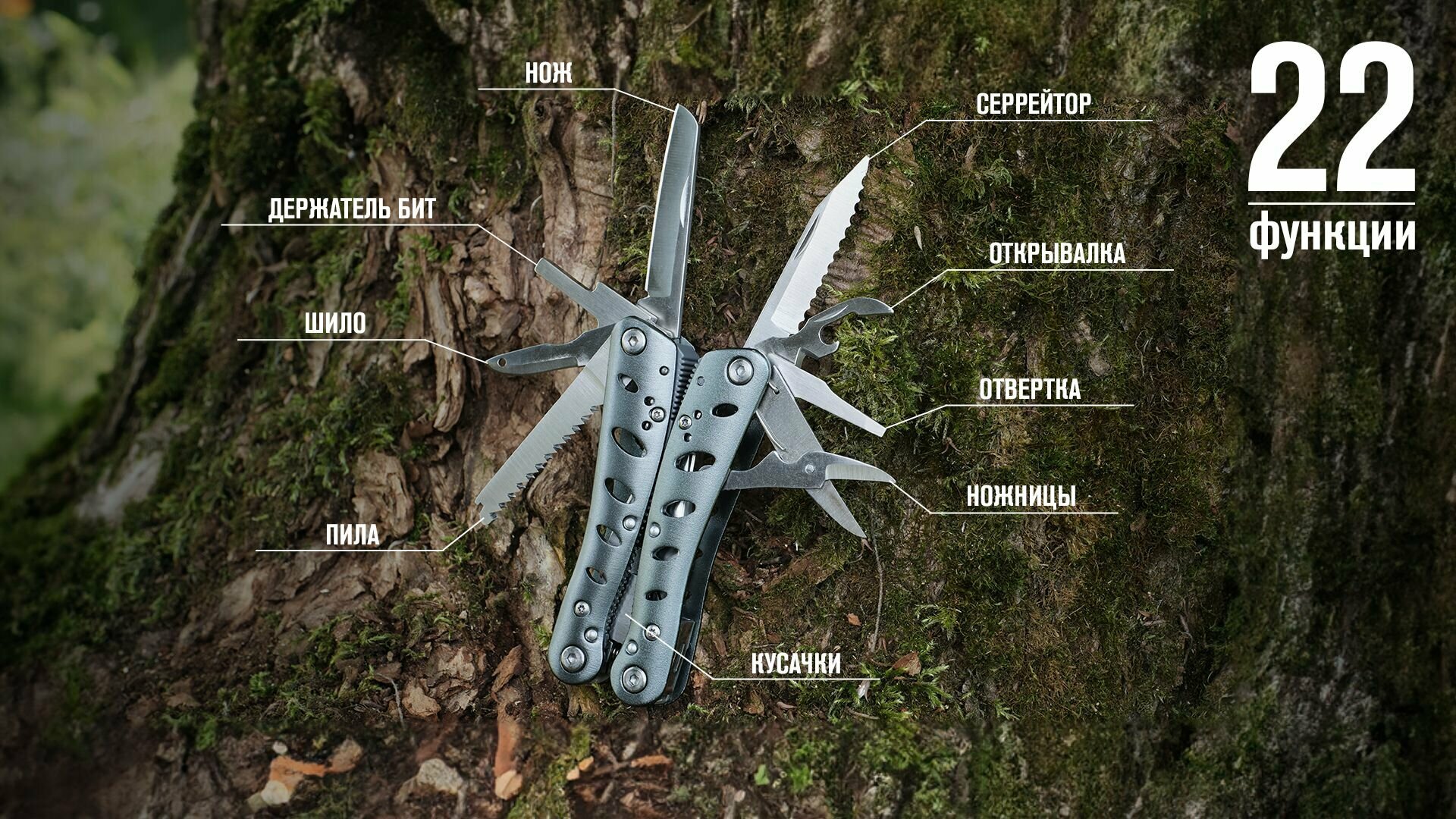 - инструменты, которые входят в комплектацию мультитула, снабжены специальными фиксаторами, что гарантирует невозможность их случайного складывания в процессе работы;