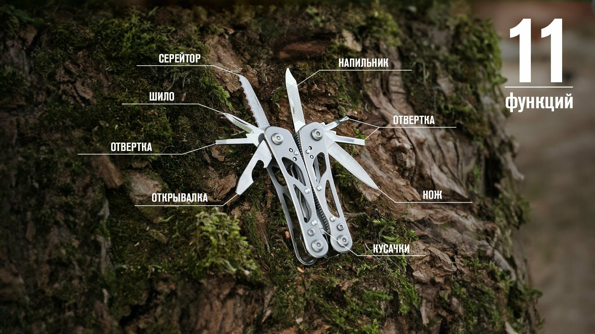 Безопасность использования – важный критерий при выборе мультитула. В данной модели имеются специальные защелки, что позволяет надежно фиксировать инструменты в процессе работы. Чтобы рука плотно прилегала к мультитулу даже если она мокрая или жирная, на рукоятках сделаны насечки.