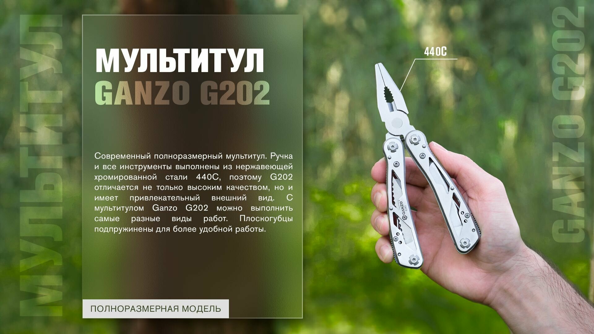 Современный полноразмерный мультитул от китайской компании Ganzo. Прекрасный выбор для тех, кто хочет, чтобы все необходимые инструменты всегда были под рукой. Компактный и легкий (весит всего 270 граммов) мультитул G202 поможет вам в самой неожиданной ситуации. Ручка и все инструменты выполнены из хромированной нержавеющей стали, поэтому G202 отличается не только высоким качеством, но и имеет привлекательный внешний вид.