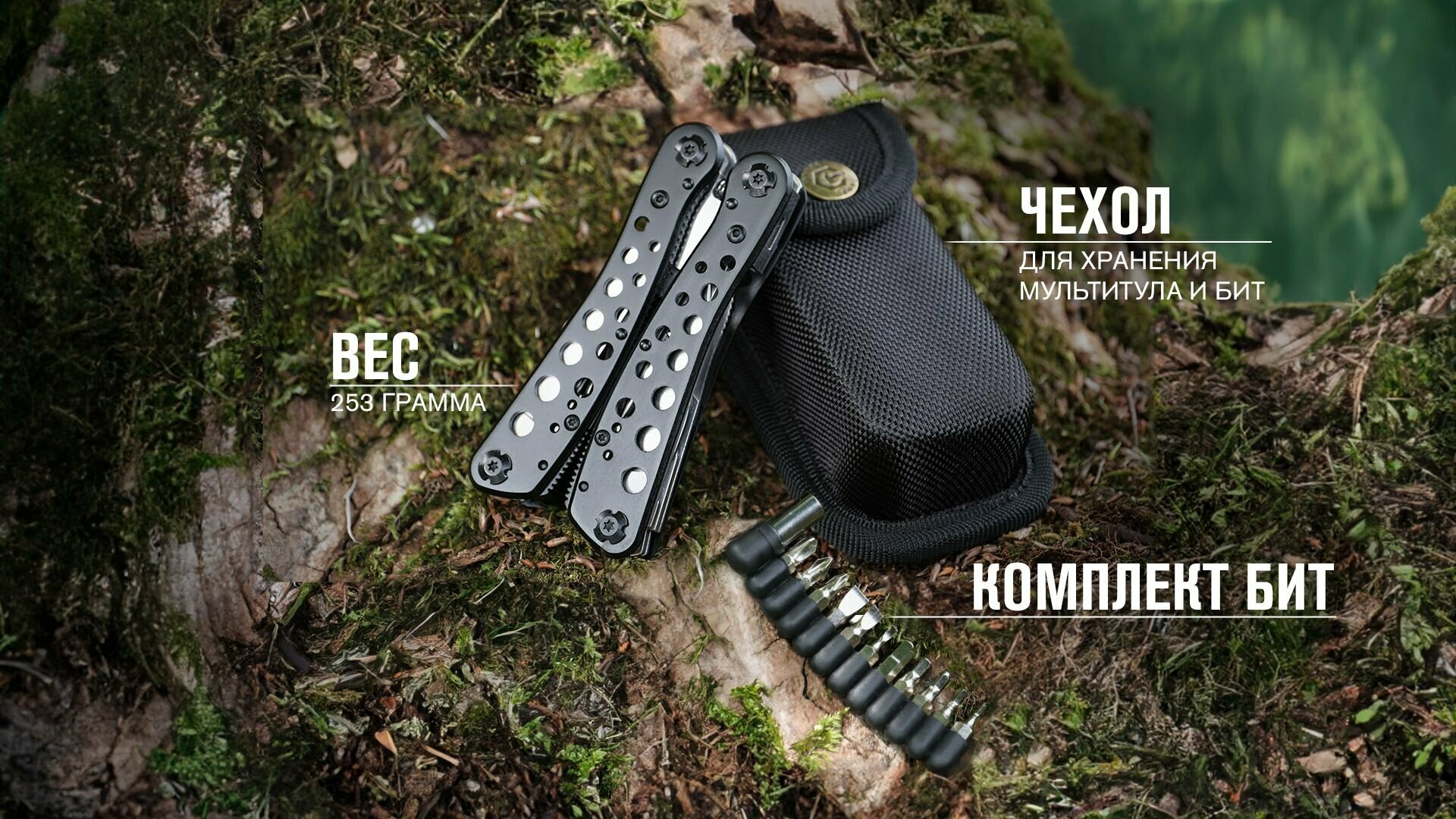 Рукоятки мультитула тоже металлические, но они покрашены в черный цвет, что делает дизайн инструмента особенно стильным. Его дополнительно украшают сквозные круглые отверстия, которые делают Ganzo G204 как зрительно, так и фактически, более легким. Вес данной модели составляет 253 грамма.