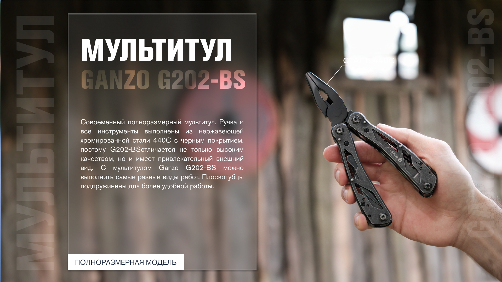 Описание мультитула Multi Tool Ganzo G202-BS: