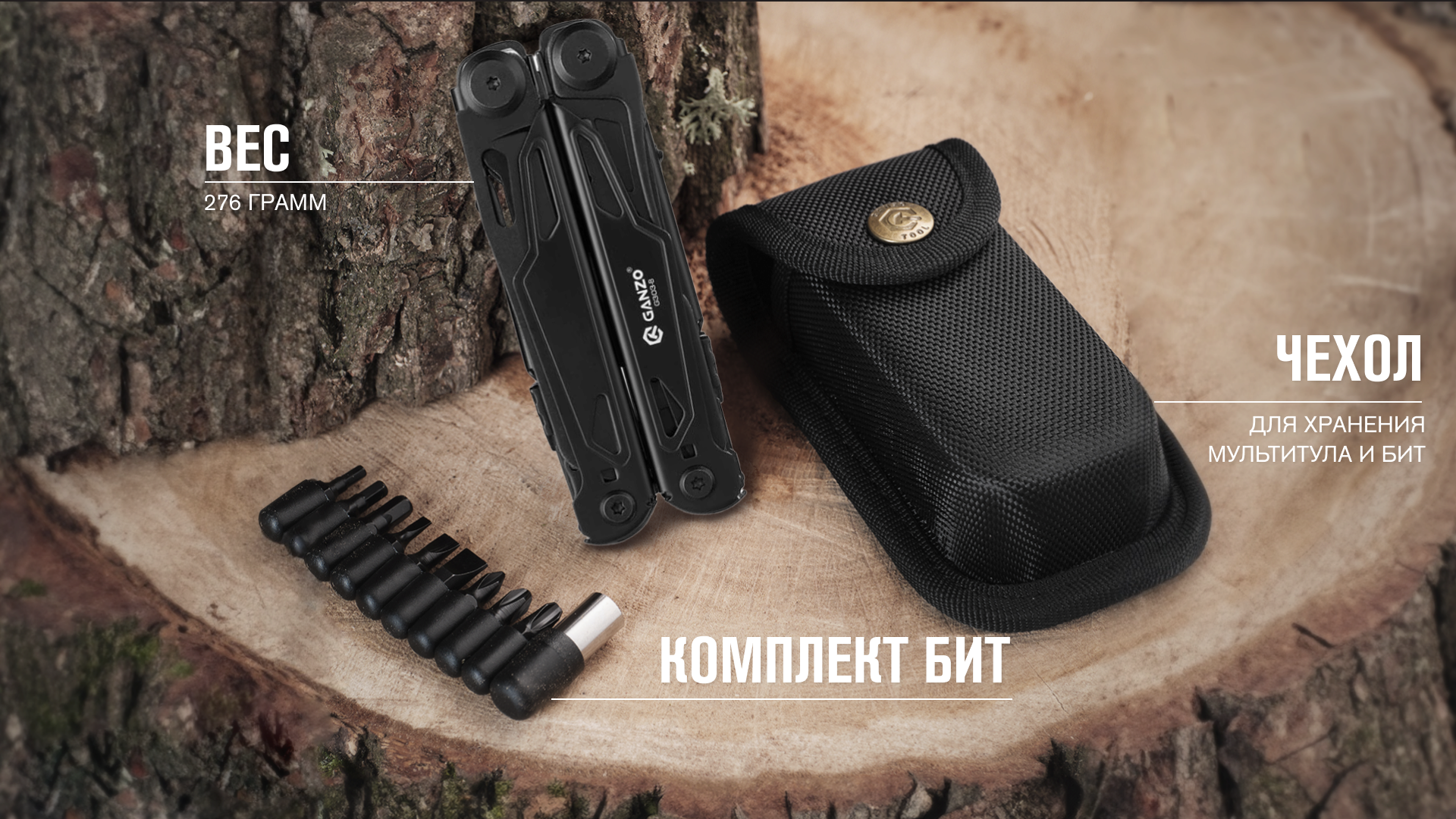 Карманный мультитул Ganzo G303 — функциональный помощник в ремонтных работах и выполнении повседневных задач, который пригодится в ситуации, когда под рукой нет полноценного набора инструментов, а проблема требует незамедлительного решения. Обладая внушительным арсеналом из 21 функции, эта модель пригодится не только в быту, но и в гараже или в полевых условиях. При этом компактность конструкции позволяет спрятать ее в кармане сумки, экономя место для другого снаряжения.