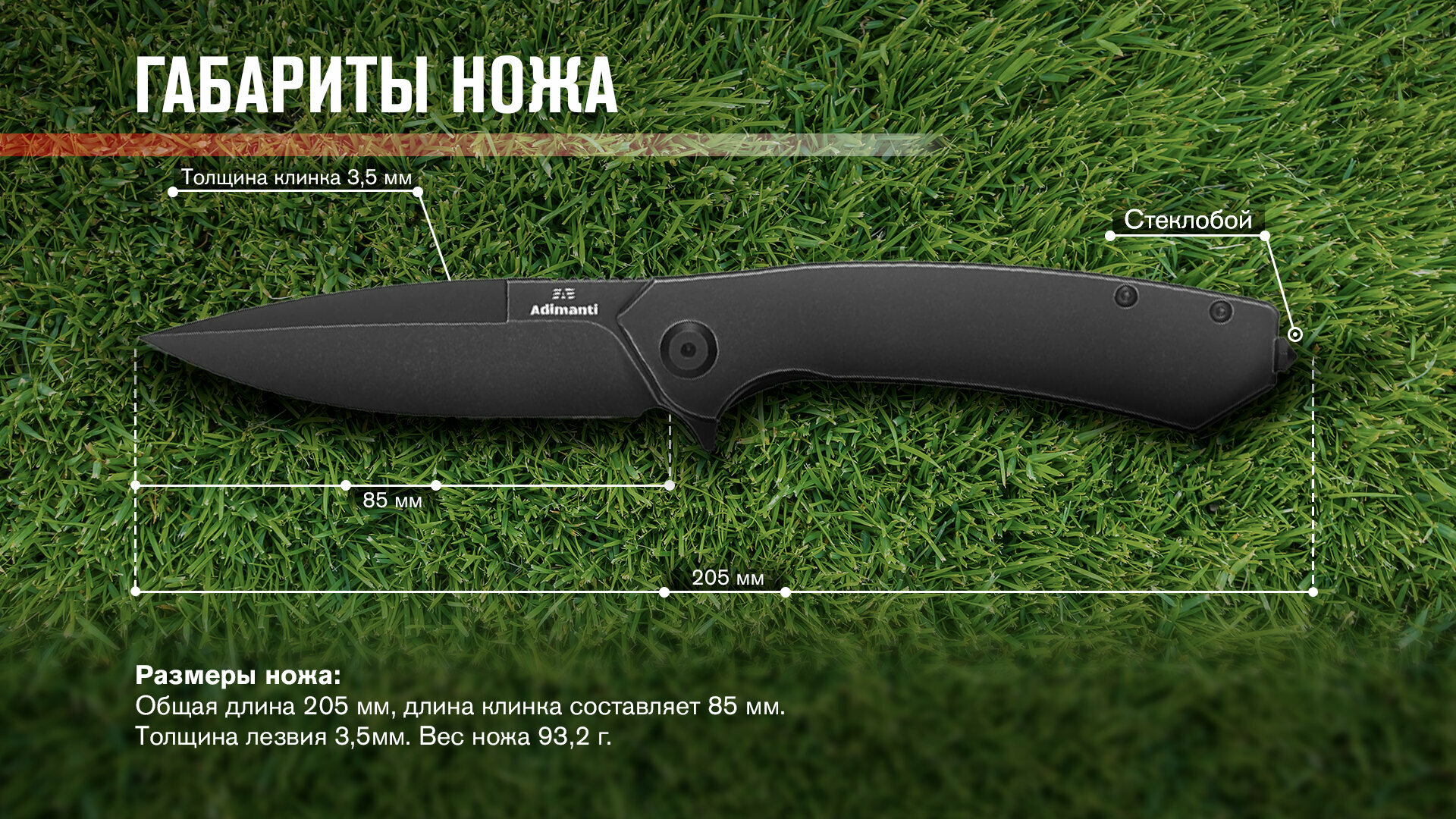 Описание складного ножа Adimanti by Ganzo (Skimen design) титанового, черного: