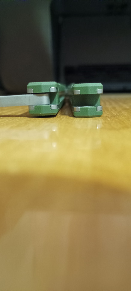 Обидві половинки рукоятки мають жахливий люфт, який ніяк не прибирається, навіть якщо намертво осьові гвинти затягнути. Ще й криво стоять відносно одна одної і це теж вирівняти ніякими маніпуляціями не виходить. Загалом якість виготовлення не дуже.