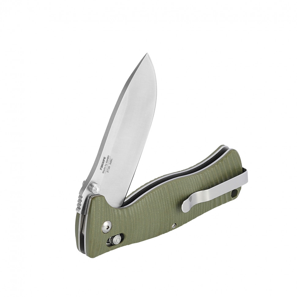 Отличительной чертой модели является наличие широкого лезвия и рукоятки с накладками из сверхпрочного стекловолокна (варианты цветов рукояти: черный, зеленый, оранжевый). Длина ножа в рабочем состоянии составляет 210 мм, а в сложенном виде – 120 мм. Лезвие ножа Firebird F720 изготовлено из нержавеющей стали 440С, которая широко применяется при производстве ножей, благодаря своим характеристикам. Длина лезвия – 90 мм, а толщина у обуха – 4 мм. Клинок относится к типу drop-point, т.е. лезвие с постепенным понижением линии обуха.