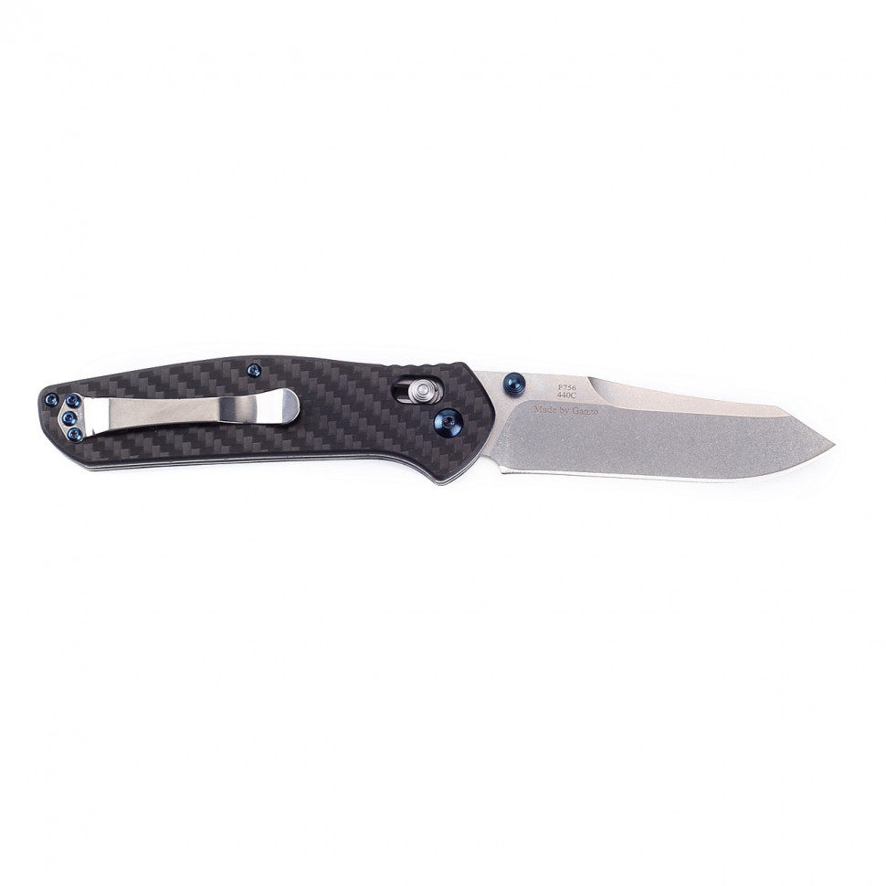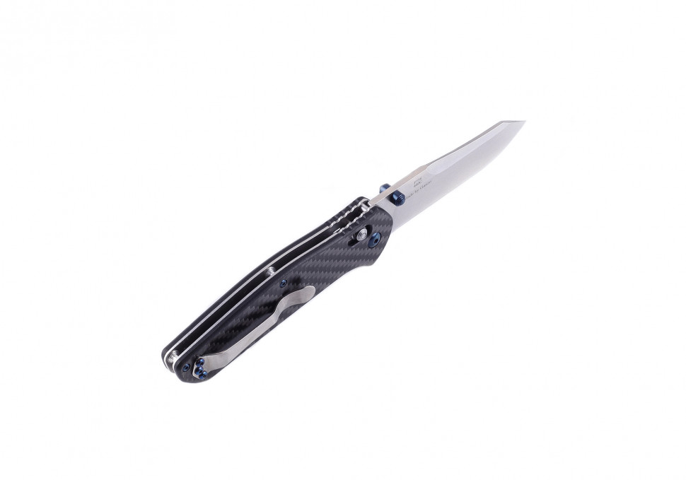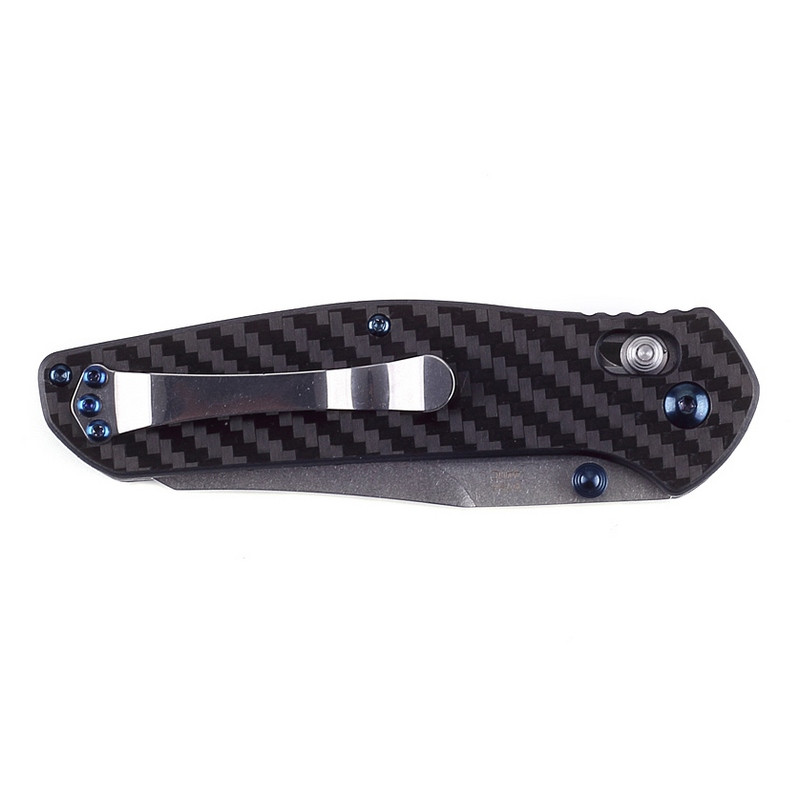 Рукоять изготовлена из композита «carbon fiber». Это современный материал из углеродной ткани, который по прочности даже превосходит металл. Его текстура придаёт рукояти стильный внешний вид. При этом ручка не скользит в руке даже в условиях повышенной влажности.