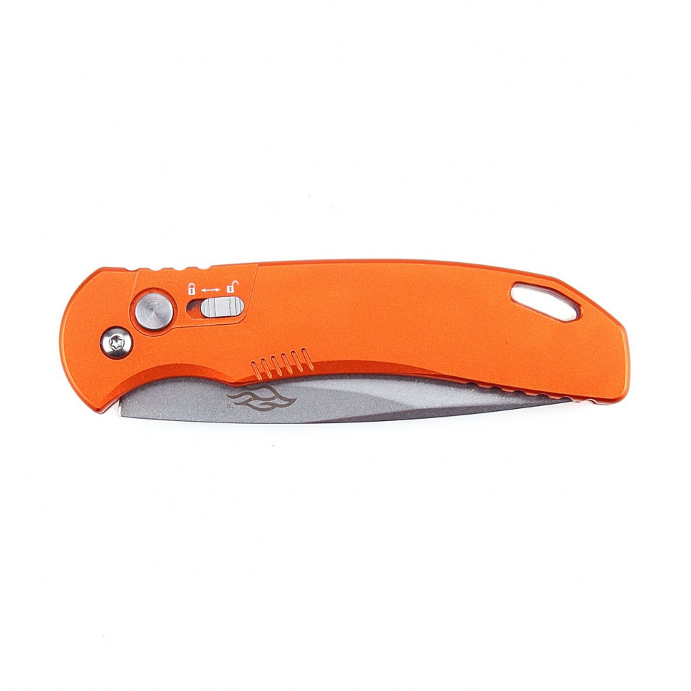 F7582AL Firebird – автоматический нож с предохранителем от компании Ganzo. Производитель отмечает, что данная модель может использоваться для туризма, а также в качестве EDC ножа для города. Выглядит стильно, есть шесть цветов на выбор: «champagne gold» (золотистый), ярко-оранжевый, пурпурный, а также чёрный, серый, синий. Есть всё для удобного ношения: клипса крепления на карман или ремень и отверстие под темляк.