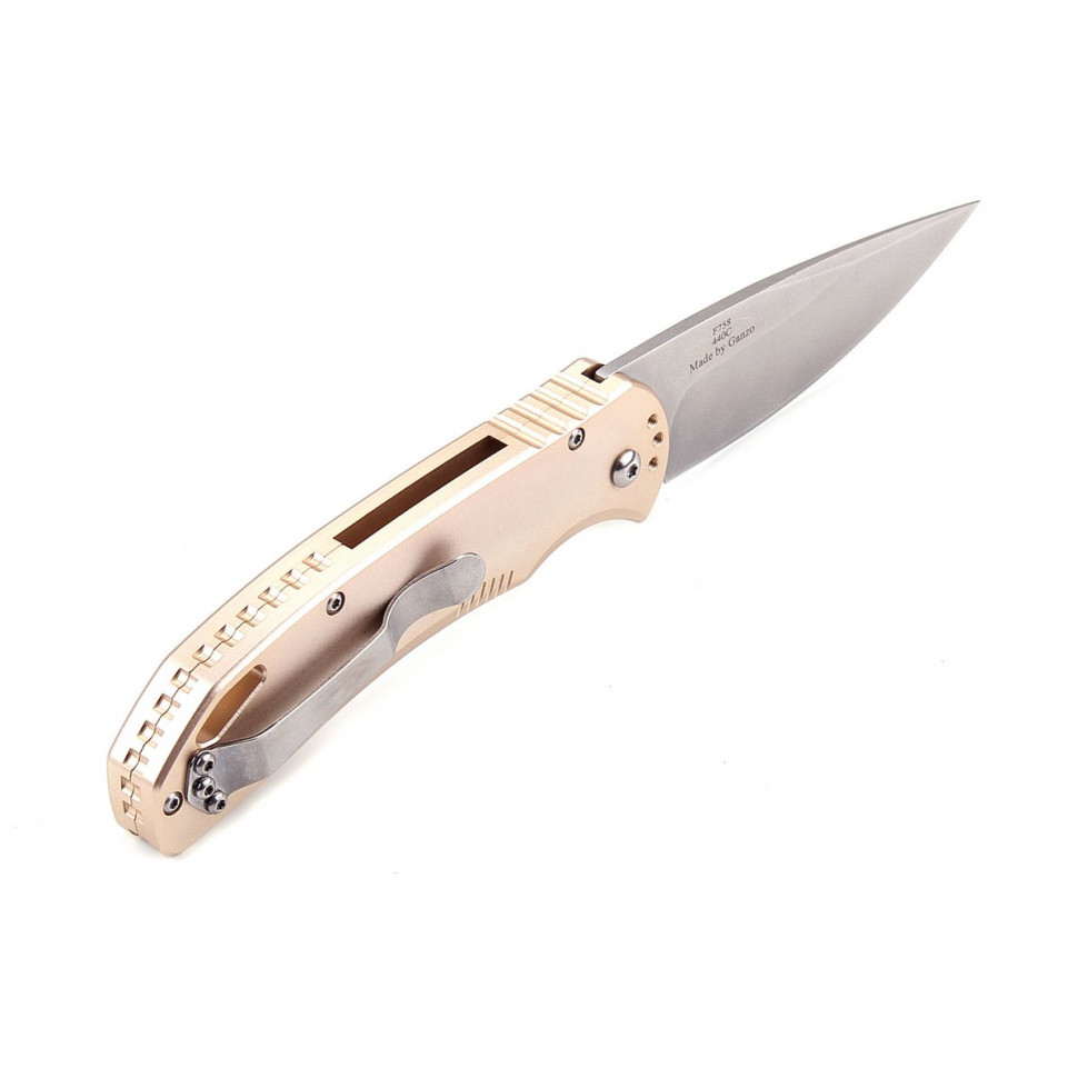 Лезвие выполнено из высококачественной коррозиестойкой стали 440С, которая уже достаточно давно используется в изготовлении ножей различного класса. У неё отличная износостойкость, хорошая режущая способность, а заточка без правки держится долгое время. Форма клинка у F7582AL – drop-point, что позволяет ножу легко резать и протыкать предметы разной прочности. А потому он легко справится с самыми разными задачами.