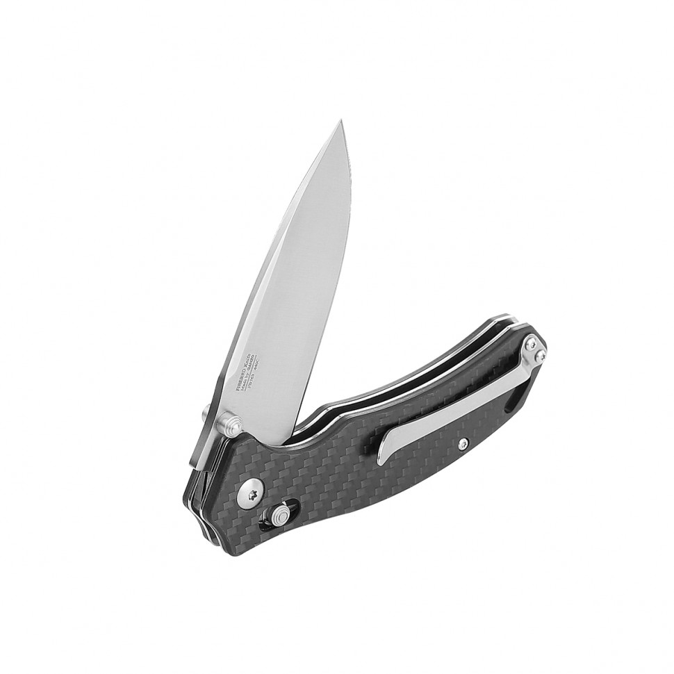 Открыть Firebird FB7631-CF можно с помощью двухстороннего шпенька. В рабочем положении лезвие ножа фиксируется замком Axis-lock. Этот механизм удобен в управлении как правой, так и левой рукой, поэтому вы в любой ситуации сможете быстро открыть нож. Единственным его недостатком является восприимчивость к мелким загрязнениям (пыль/песок), поэтому производитель рекомендует своевременно чистить FB7631 и по возможности не допускать сильного засорения, так как это может негативно сказаться на его работе.