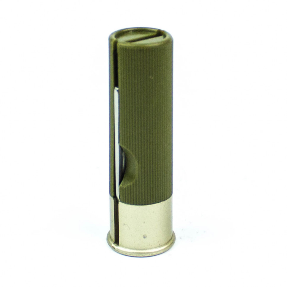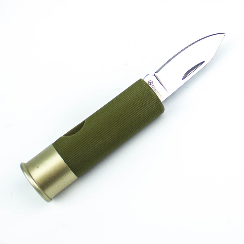 Особый интерес представляет рукоятка ножа Ganzo G624M. В сложенном виде эта модель напоминает патрон. Диаметр цилиндра составляет 2 см, а его длина — 6 см. Рукоятка выполнена из прочного пластика. Основание покрашено под металл. Чтобы нож было удобнее крепко держать в руках, ручка сделана рифленой. Для заказа доступно четыре варианта цвета: красный, черный, зеленый и синий.