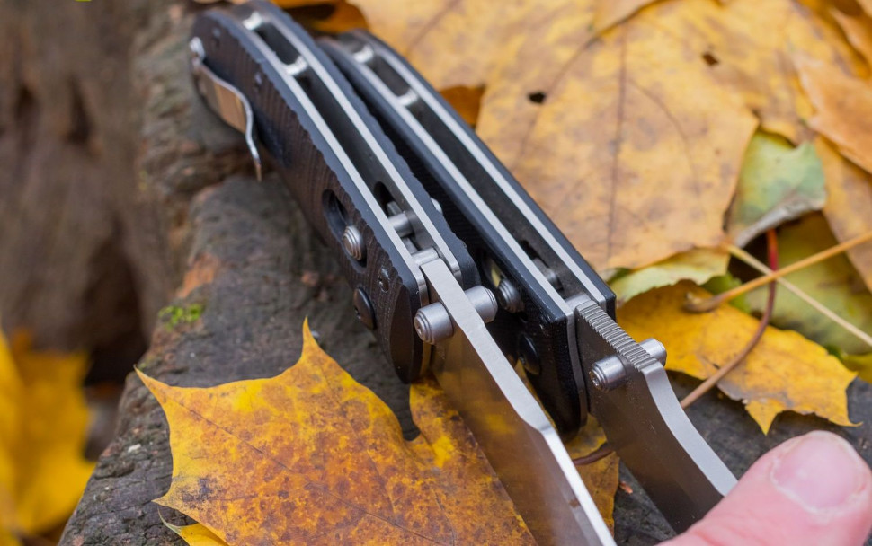 Описание ножа Ganzo G711: Еще одно преимущество Ganzo G711 - прочная рукоять, выполненная из композита G10, которая повышает общий уровень прочности всего ножа и улучшает качество сцепления с ладонью (таким образом, нож не скользит, даже в условиях повышенной влажности).