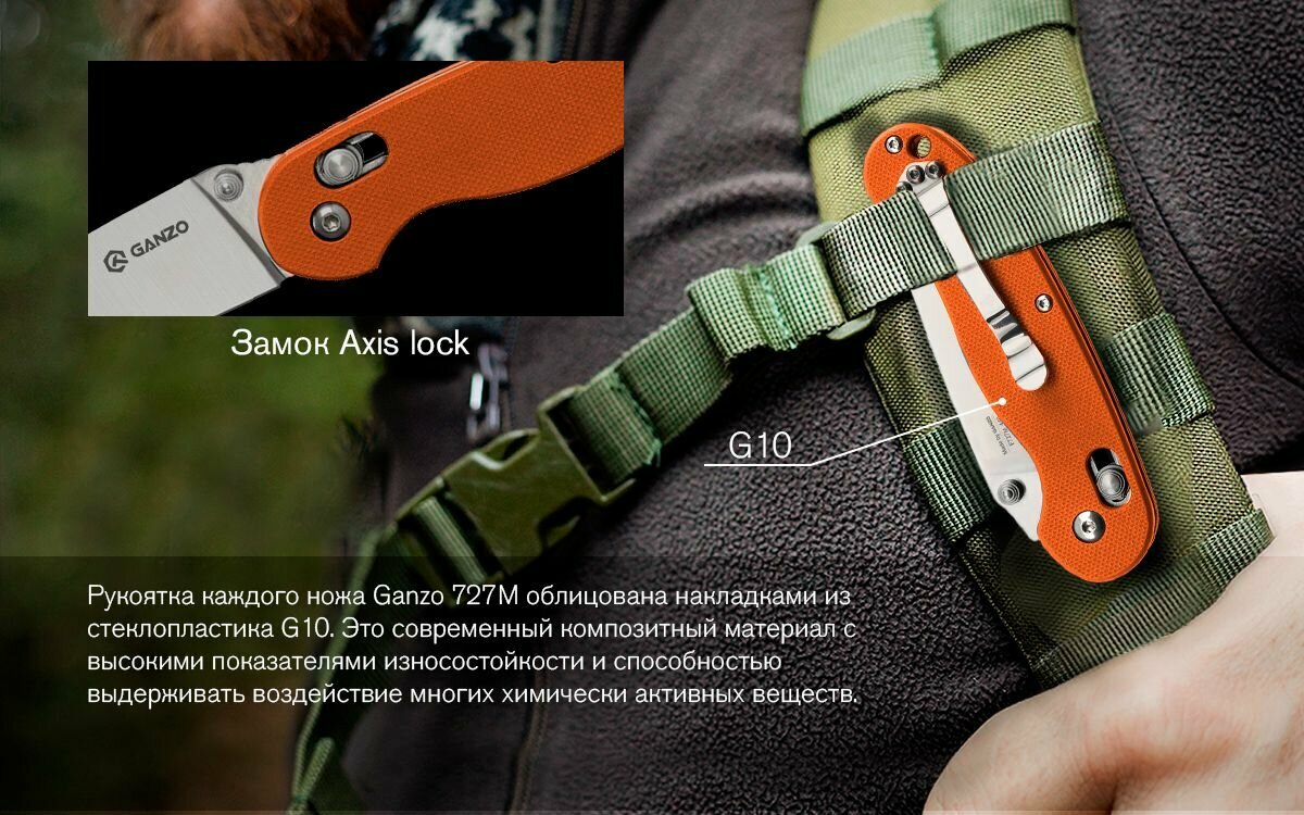 Модель Ganzo 727M создана таким образом, чтобы максимально полно удовлетворить потребности туристов и других любителей загородного отдыха, а также людей, которым карманный нож необходим ежедневно. Этот складной нож эффективно работает с самыми разными материалами: пищевыми продуктами, тканями, ветками и т.д. Поэтому он станет отличным вспомогательным инструментом для рыбаков, обитателей кемпинга, мастеров по ремонту.