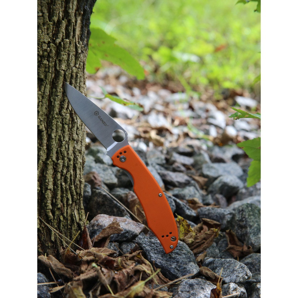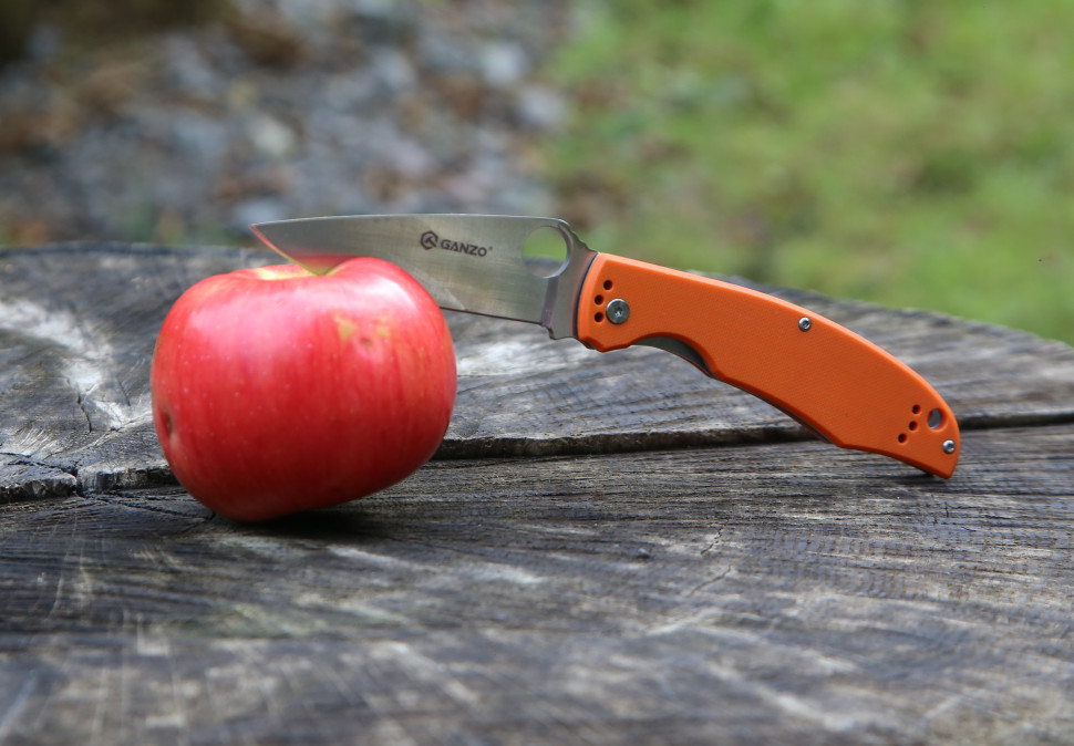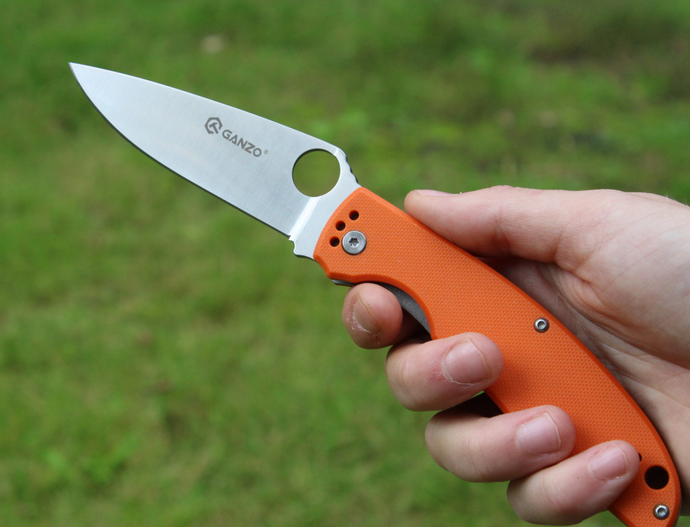 Складной нож Ganzo G732 с первого взгляда привлекает внимание дизайном. У него широкий клинок необычной формы с отверстием круглой формы, которое выполняет роль шпенька для открывания. Рукоятка подогнана под форму руки, а ее цвет покупатель выбирает из четырех возможных вариантов. Но внимания заслуживает не только дизайн ножа, но и материалы, из которых он изготовлен.
