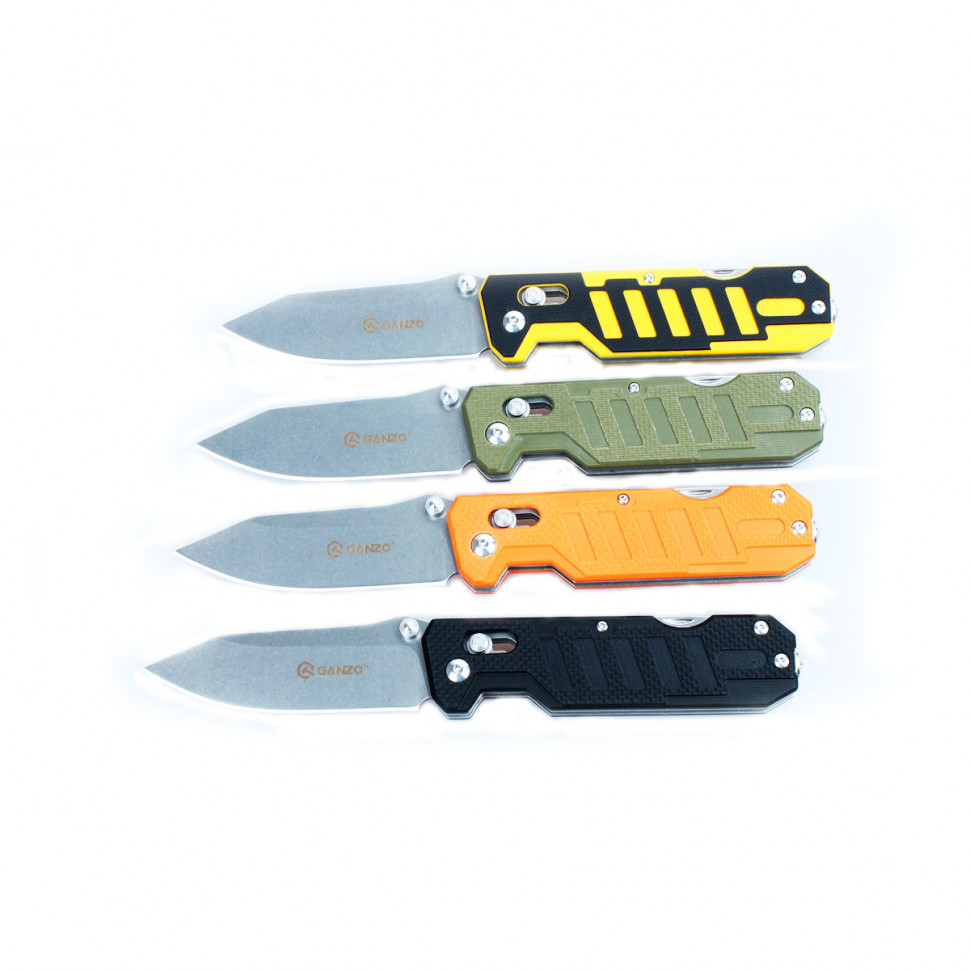 Если вы часто бываете на природе, да еще и увлекаетесь спелеологией, альпинизмом или туристическими походами, то модель Ganzo G735 создана специально для вас. Это практичный складной нож с дополнительными функциями, который справится как со стандартными задачами, возникающими во время отдыха за городом, так и со сложными ситуациями. Его основная часть — это гладко заточенный клинок из нержавеющей стали марки 440С. Длина лезвия составляет 8,6 см, а толщина обуха — 0,35 см. Сплав, из которого изготовлен нож, хорошо противостоит образованию ржавчины и долго сохраняет острую заточку. Твердость этой стали измеряется в пределах +- 58HRC. Из этого же металла сделаны и дополнительные инструменты, которые размещены в задней части рукоятки. Это открывалка для бутылок и консервных банок, в которую также интегрирован инструмент для зачистки проводов, и стропорез. Помимо того, в рукоятку встроен стеклобой, который может пригодиться не только спасателям, но и обычным пользователям.