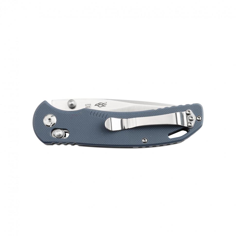 Клинок ножа изготовлен в форме clip-point. У него гладко заточена вся кромка снизу, а сверху имеется спуск, напоминающий внешне фальшлезвие. Клинок заканчивается острием, с помощью которого удобно делать аккуратные проколы. На боковой поверхности лезвия ножа немного заметны поперечные следы от финишной обработки металла. Такие следы характерны для сатинирования — полировки довольно крупным абразивом.