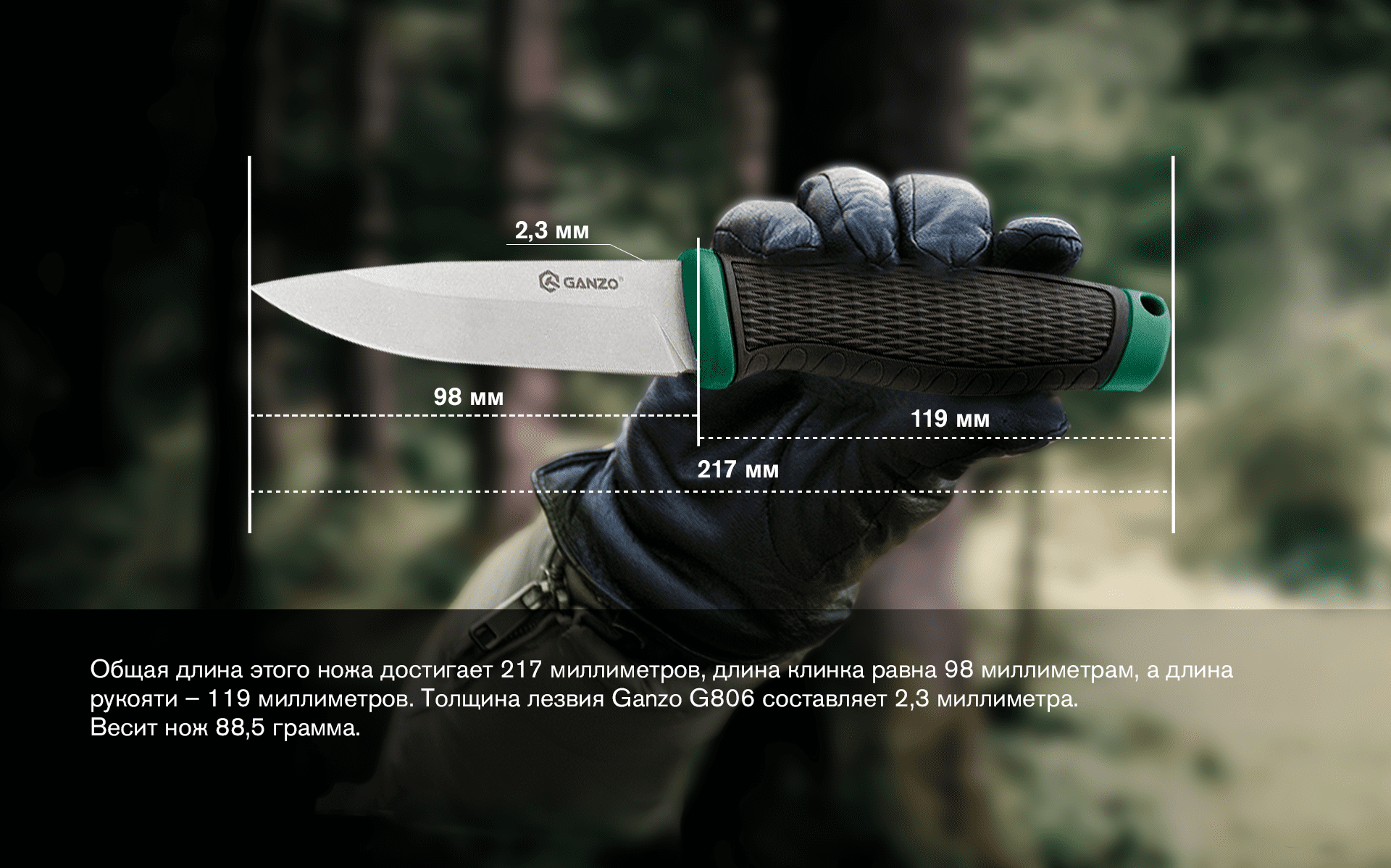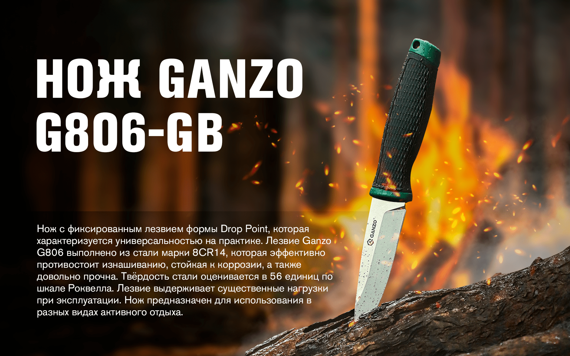 Нож модели Ganzo G806 является инструментом с фиксированным лезвием формы Drop Point, которая характеризуется универсальностью на практике. Это добротная модель, которой одинаково удобно будет выполнять как колющие, так и режущие, операции. Нож предназначен для использования в разных видах активного отдыха. Пригодится туристам, охотникам, рыбакам, выживальщикам, всем любителям активного времяпровождения на открытом воздухе.