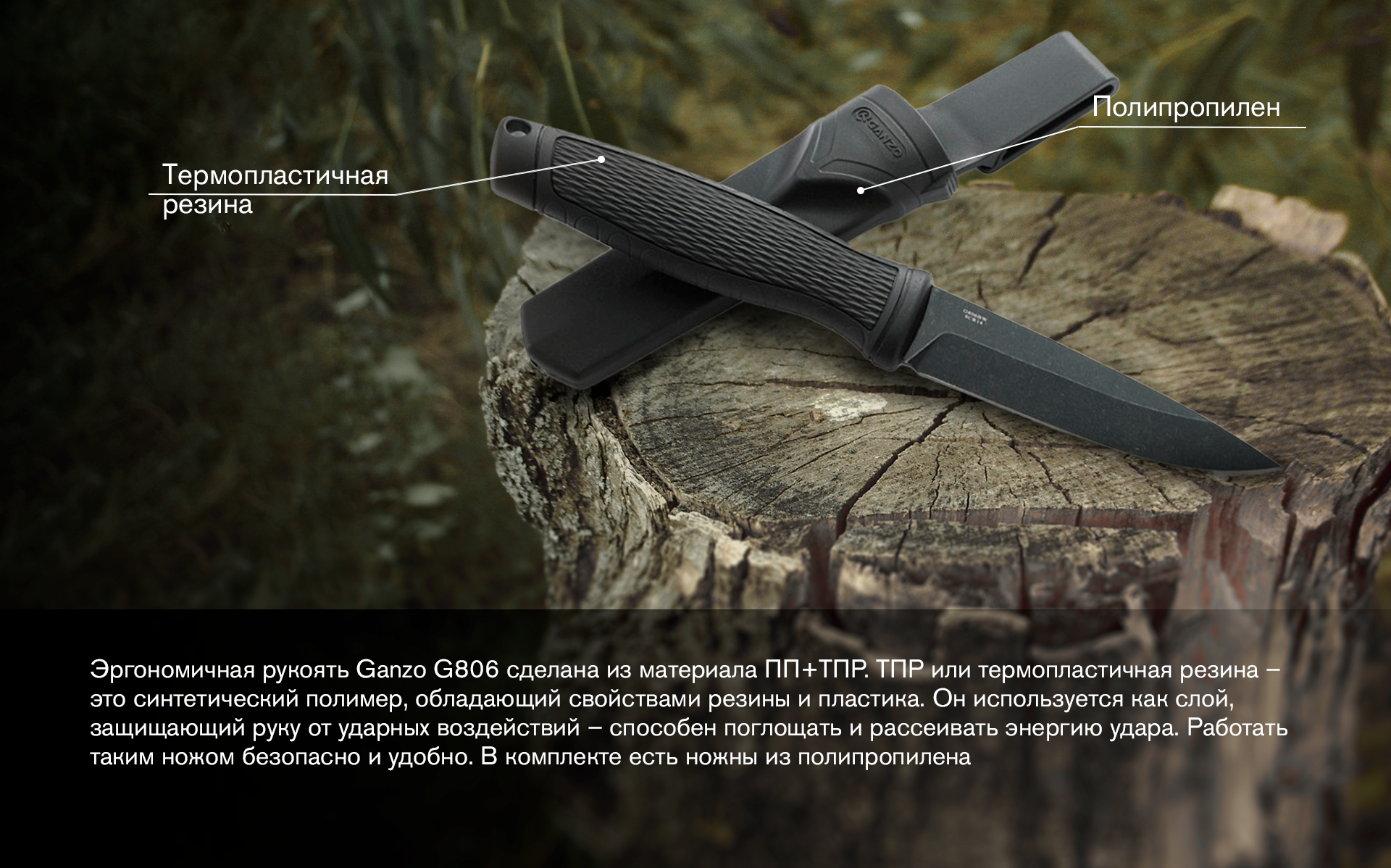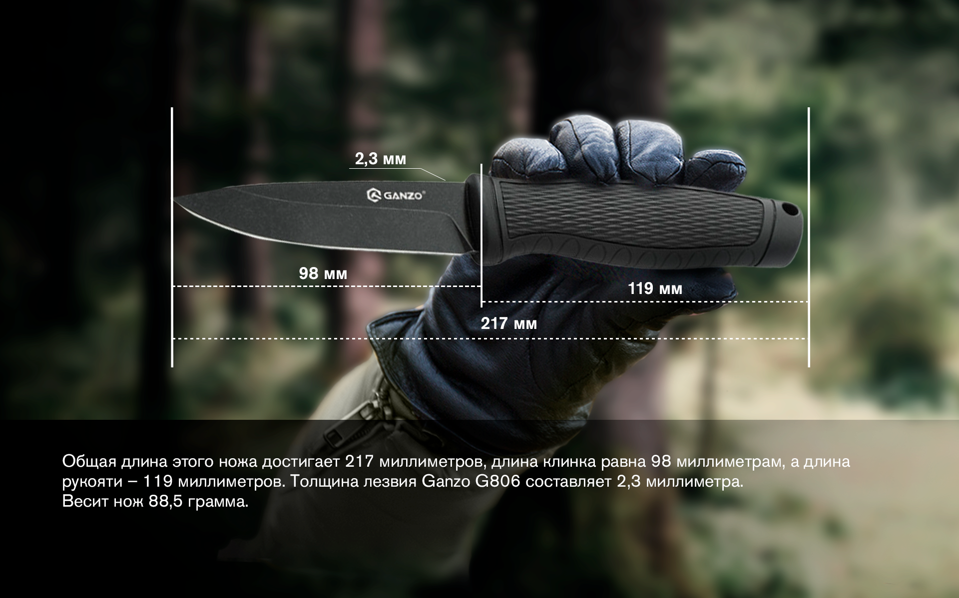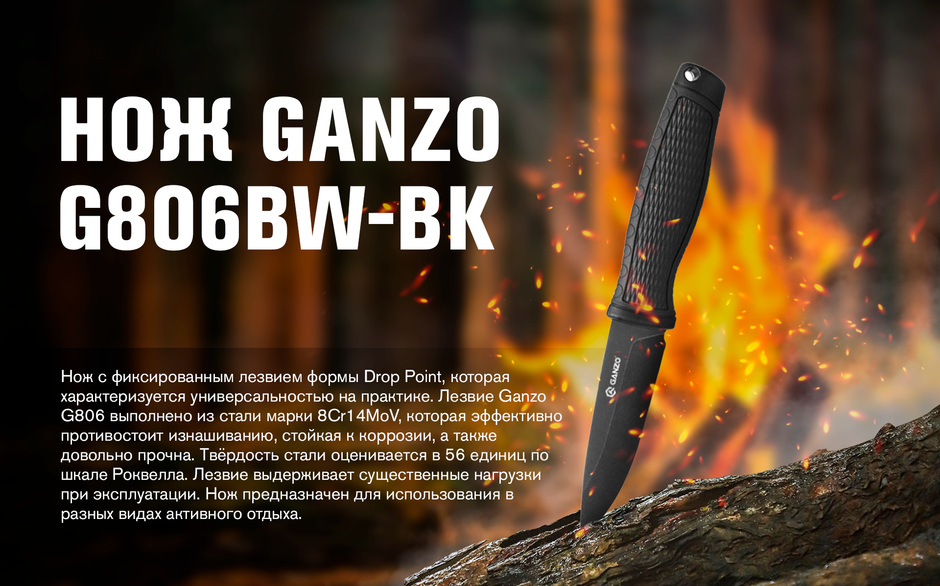 Описание ножа Ganzo G806BW-BK черного с чехлом: