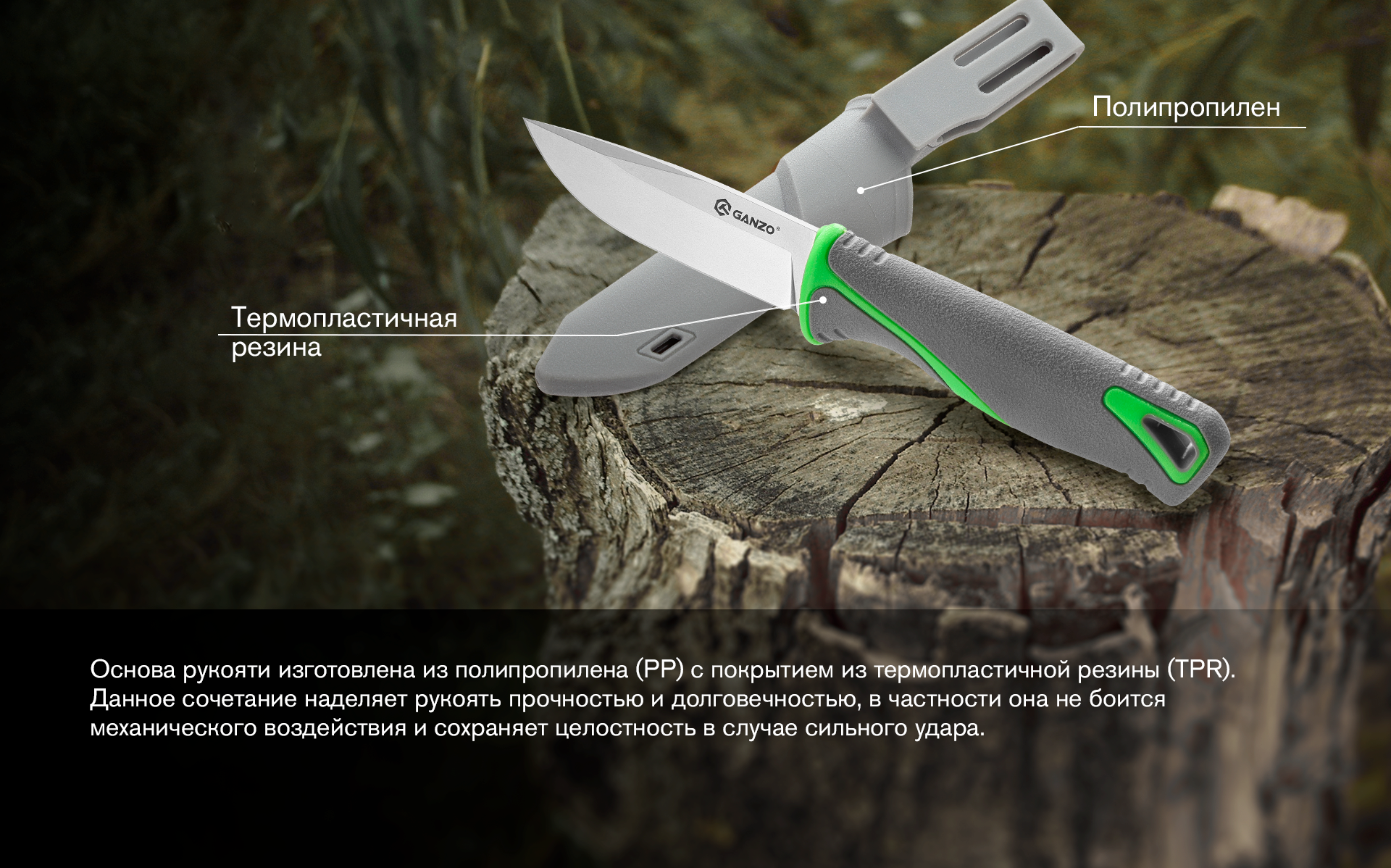 - в набор входят ножны из полипропилена (PP).