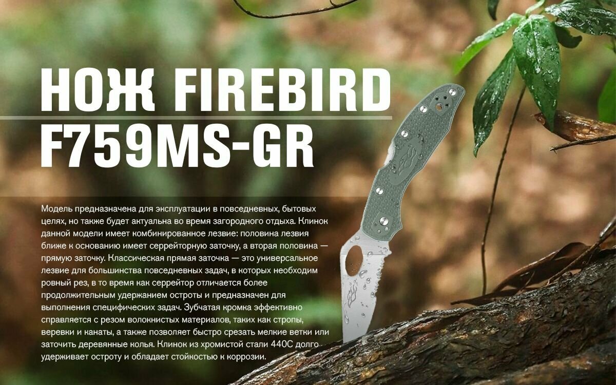 Описание ножа Firebird by Ganzo F759MS, зеленого: