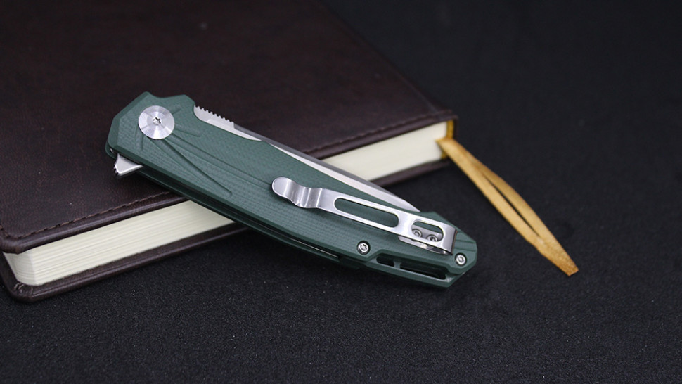 Длина клинка данной модели равна 86 мм. А вот толщина по обуху составляет целых 3,5 мм. Так что нож подойдет и для использования в полевой кухне, и для более серьезных видов работ. Форма его лезвия - это Droppoint: немного сниженная линия обуха и хорошо сбалансированное острие. Нож получил заточку типа plain - гладкую по всей длине. На финишной стадии обработки клинок прошел шлифовку путем сатинирования. В данной модели добавлена такая деталь, как флиппер, который помогает открывать нож, а затем служит дополнительной защитой для пальцев.