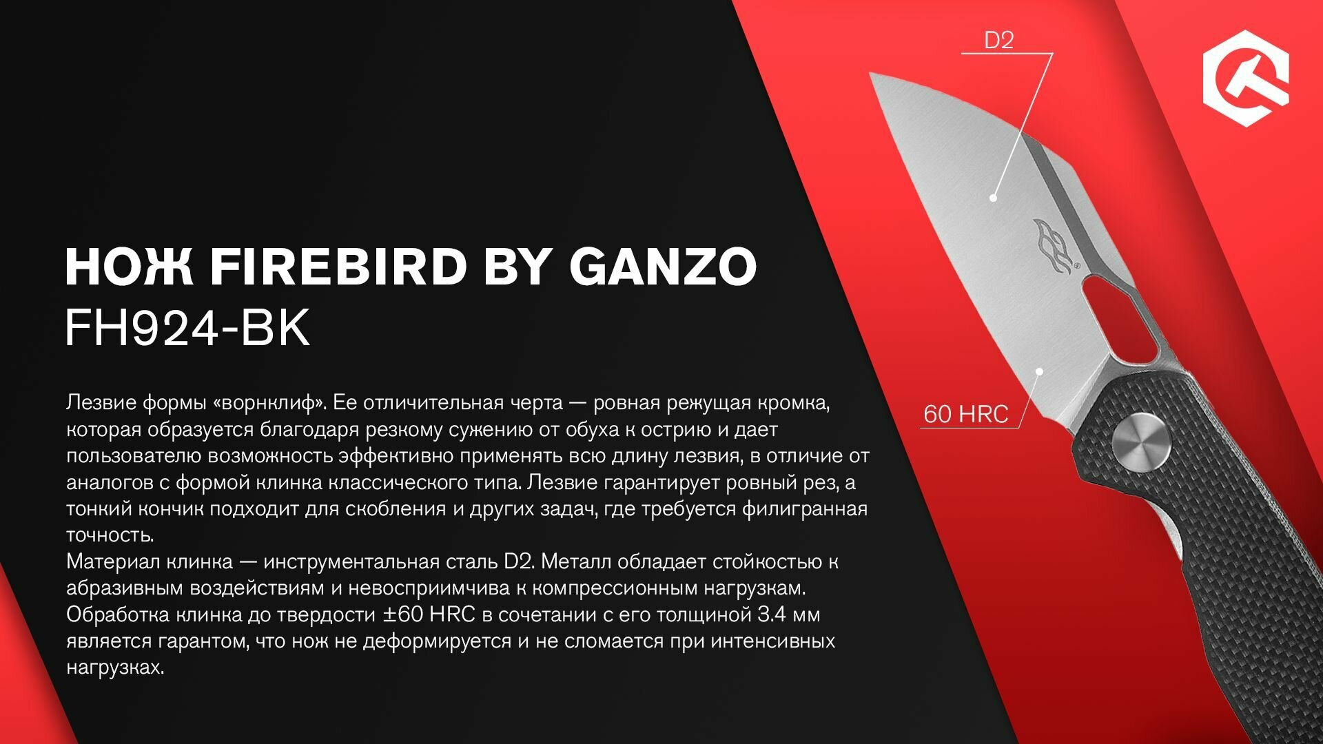 Складная модель Firebird FH924 — это воплощение простоты и эффективности, что делает из инструмента практичного EDC помощника практически в любых ситуациях, возникающих в быту, в городских и полевых условиях.