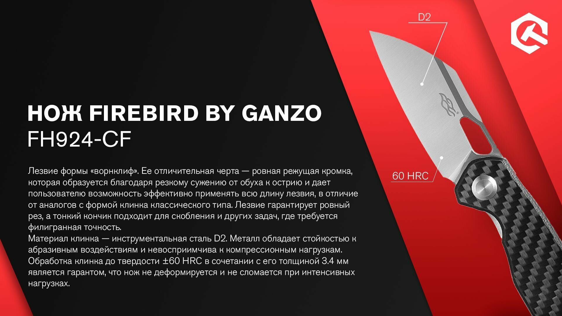 Складная модель Firebird FH924 — это воплощение простоты и эффективности, что делает из инструмента практичного EDC помощника практически в любых ситуациях, возникающих в быту, в городских и полевых условиях.