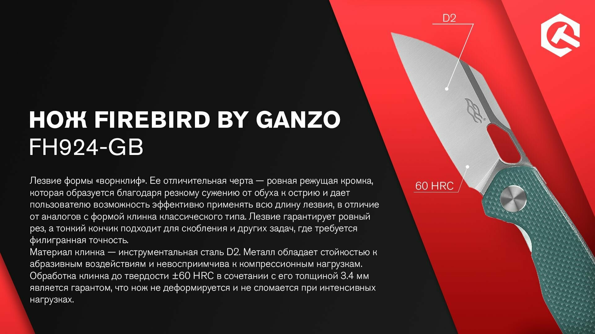 Складная модель Firebird FH924 — это воплощение простоты и эффективности, что делает из инструмента практичного EDC помощника практически в любых ситуациях, возникающих в быту, в городских и полевых условиях.