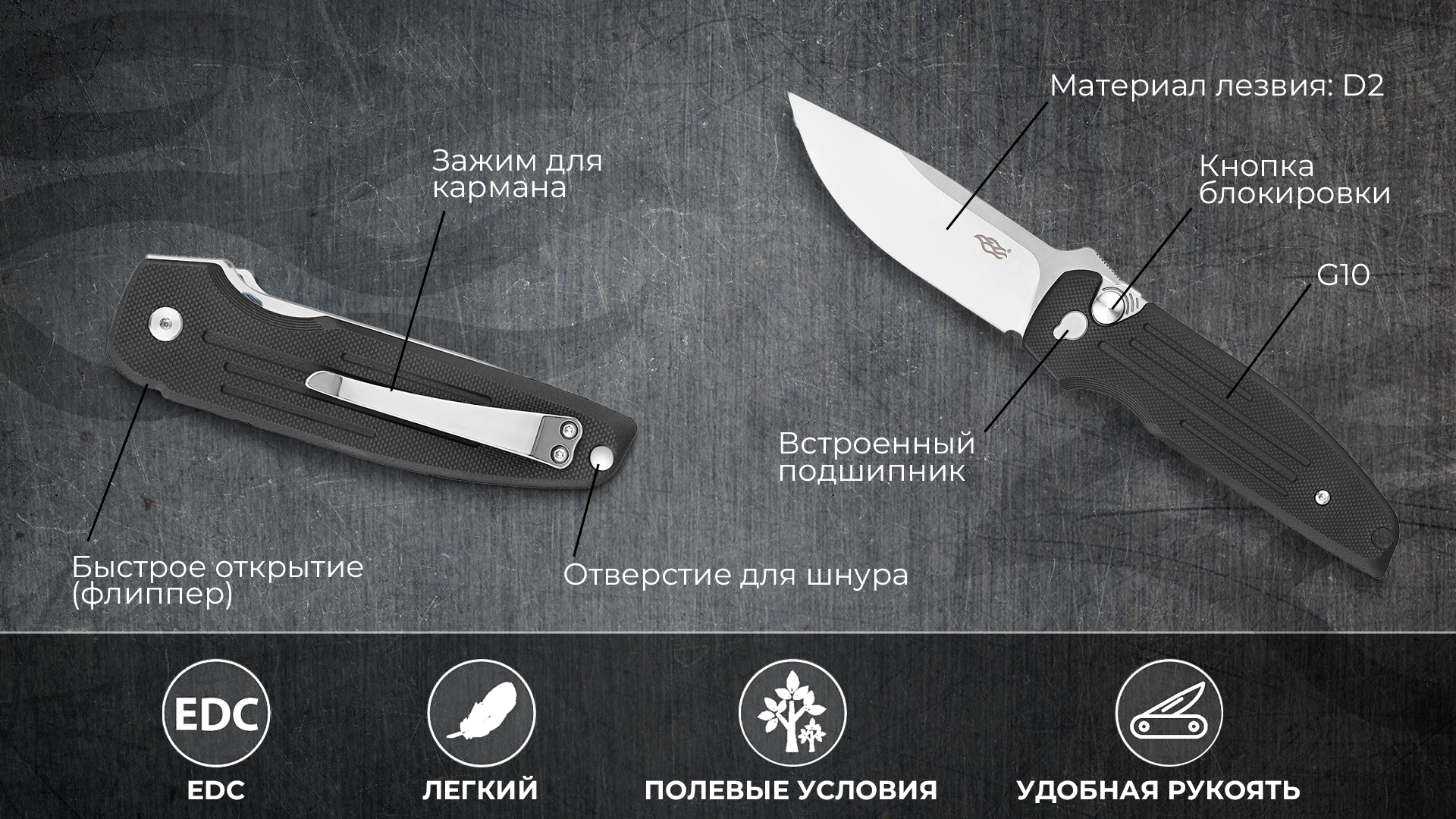 Лаконичный дизайн, разработанный с упором на эргономику, — это то, что делает складной нож Firebird FH926 универсальным инструментом для выполнения колюще-режущих работ разной сложности. Его клинок с прямым лезвием подходит для ровного реза, а приподнятый упор для пальца на обухе облегчает выполнение силовых задач, требующих немалого физического усилия. В результате вы получаете максимальный контроль над инструментом в ситуациях, где требуется высокая точность и сила.