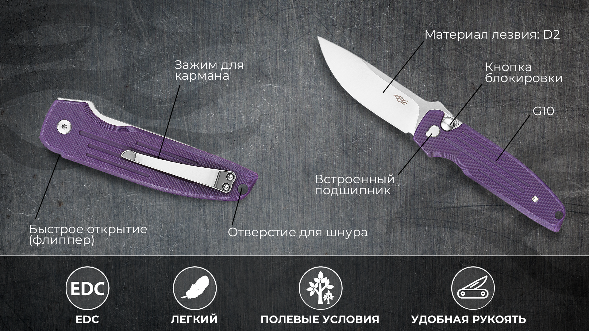 Описание ножа складного Firebird FH926-PL сиреневого: