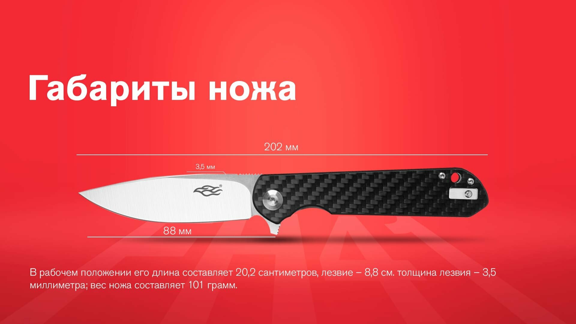FH41-FC от Firebird стильно выглядит, но при этом практически идеально сбалансирован. В рабочем положении его длина составляет 20,2 сантиметров, лезвие – 8,8 см.