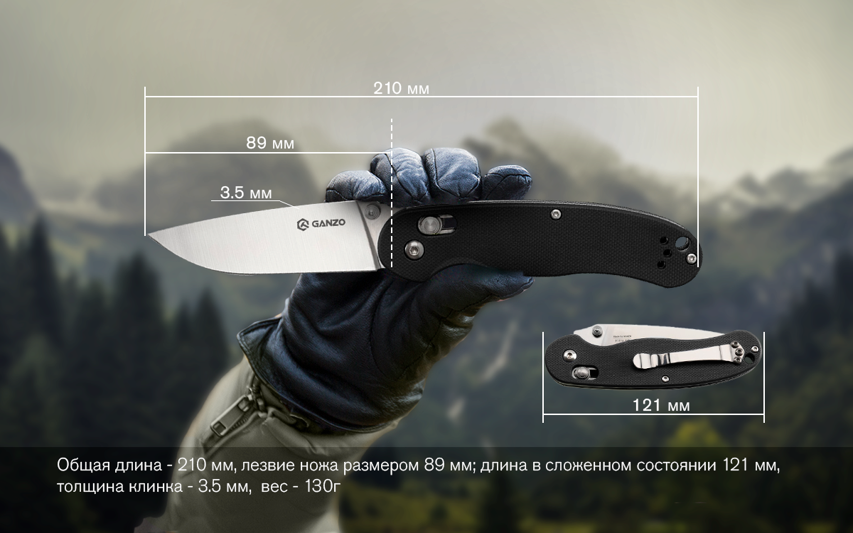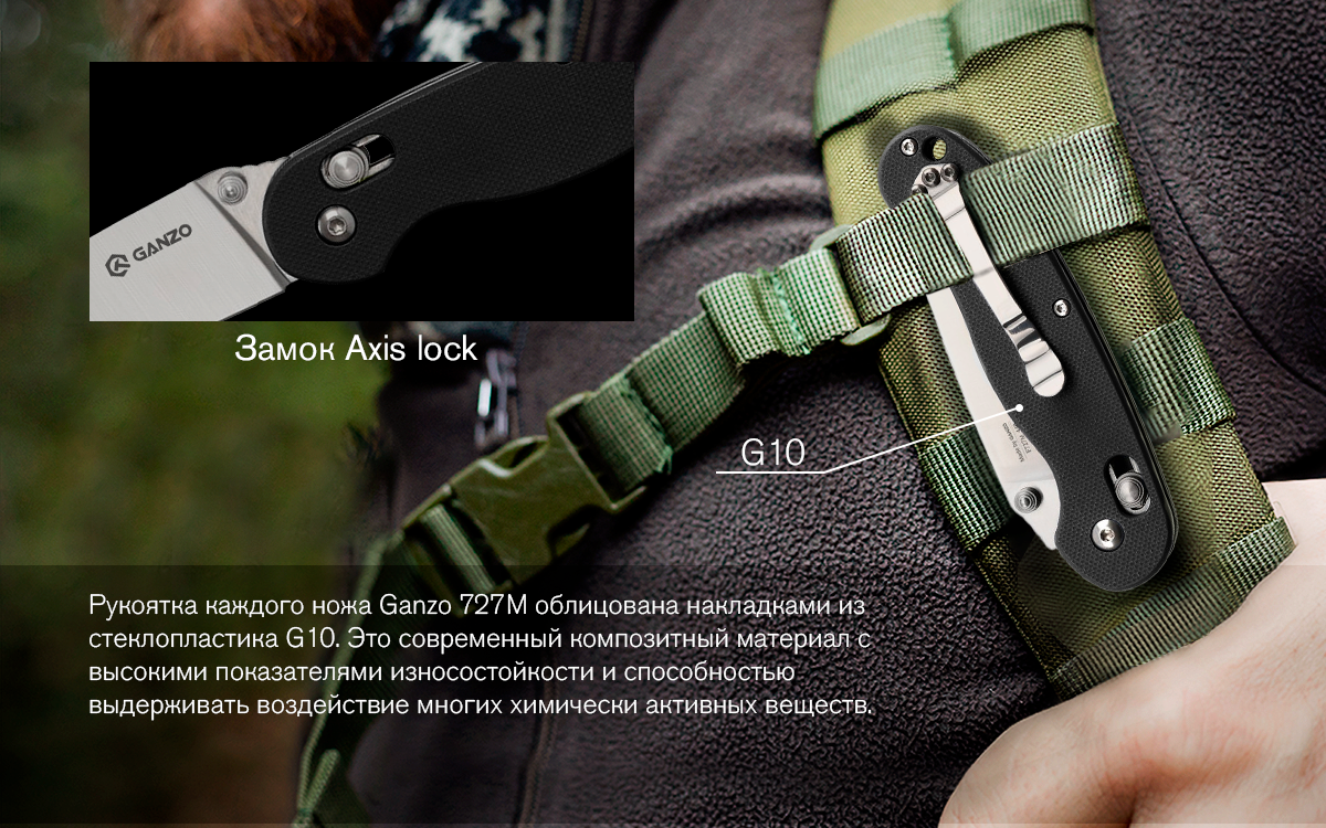 Нож D727 - прочный, не прихотлив в уходе, практичен в использовании. Теперь нож Ganzo стал еще совершеннее за счет использования стали D2 и добавления подшипников в механизм замка типа Axis-lock. Этот замок обеспечивает легкое открытие и закрытие лезвия, его надежную фиксацию. Подшипники добавили плавности ходу клинка и повысили износоустойчивость механизма.