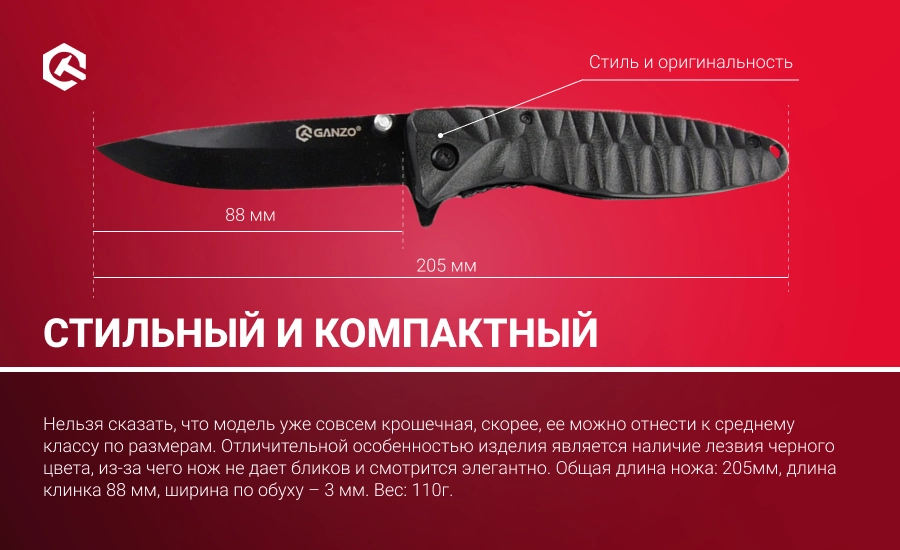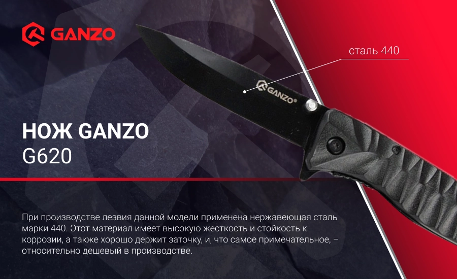 Описание ножа Ganzo G620, черный клинок: