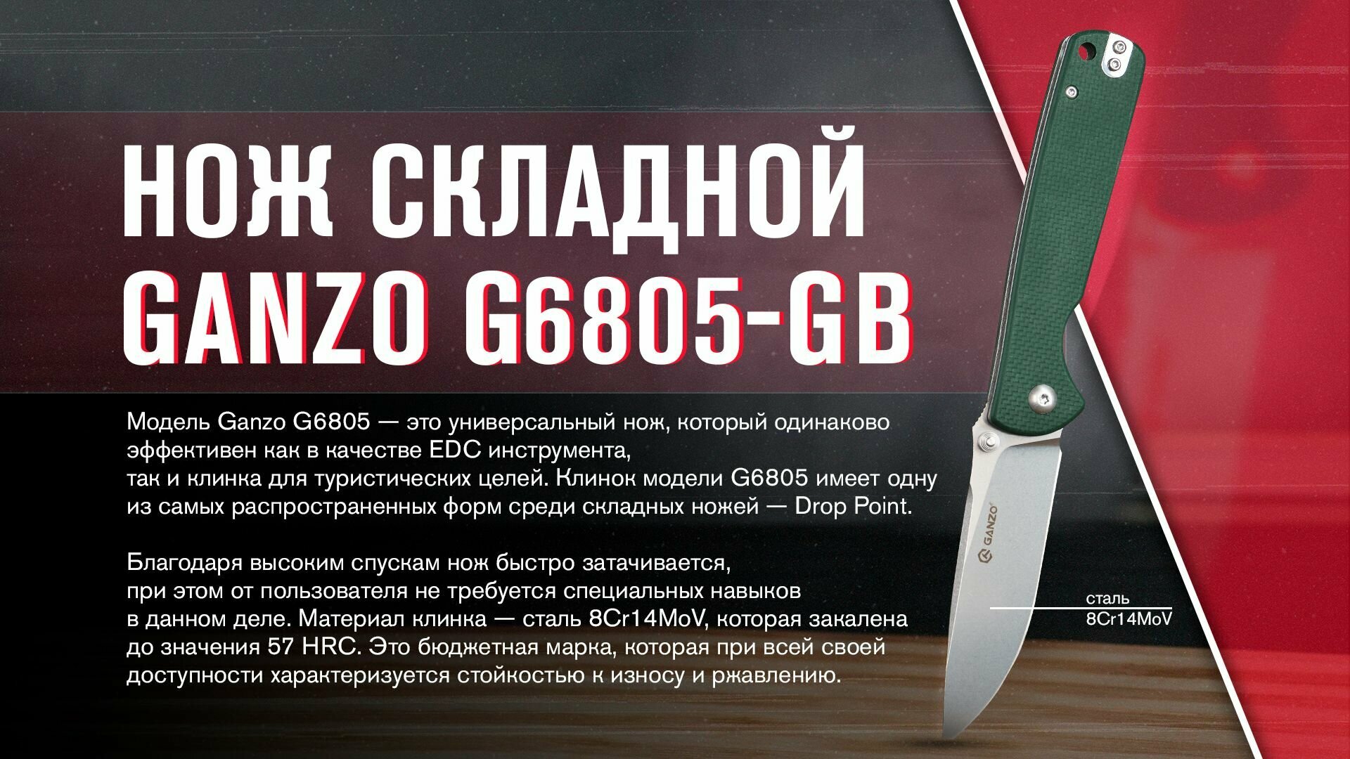 Модель Ganzo G6805 — это универсальный нож, который одинаково эффективен как в качестве EDC инструмента, так и клинка для туристических целей. Данный нож имеет простую в уходе конструкцию складного типа, которую можно незаметно носить в кармане одежды, рюкзака или хранить в бардачке автомобиля на экстренный случай.
