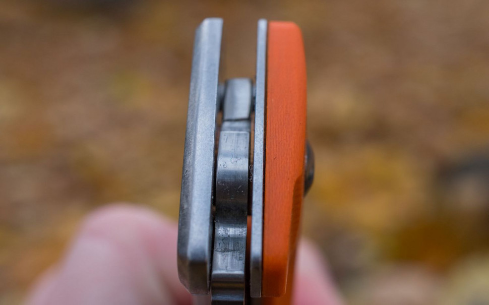 Для ручки ножа производители выбрали все ту же нержавеющую сталь, а также современную разновидность стеклопластика - G10. Он относится к композитным материалам с высокой прочностью и способностью противостоять основным видам коррозии. Покупатели могут выбирать ножи с накладками трех различных цветов: классического черного, зеленого или оранжевого. С обратной стороны ручки расположена металлическая стальная клипса для закрепления ножа в кармане или на поясе.